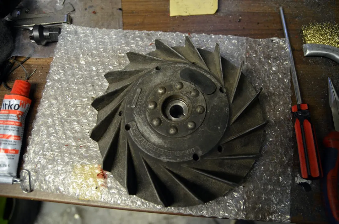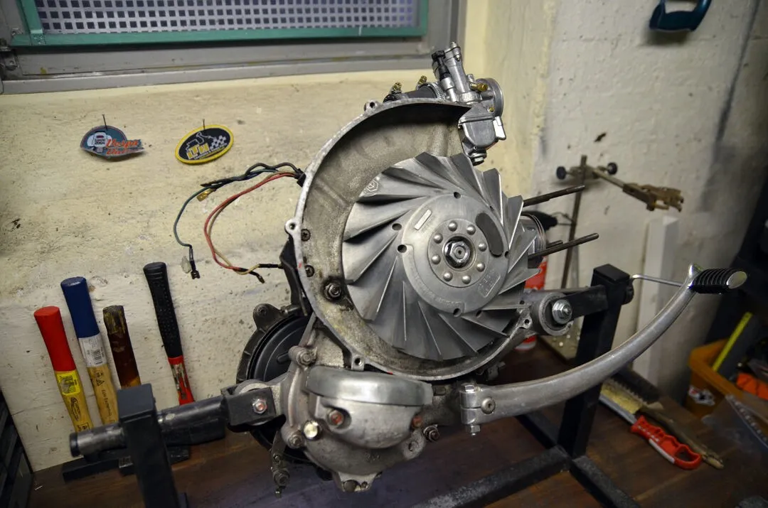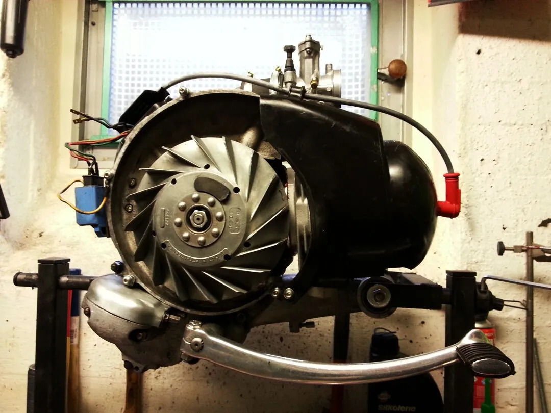 Zwischenzeitlich mal den Motor soweit es geht zusammengebaut, mit Oldiekickstarter weil mir der PX ganz und garnicht gefällt, Polrad gereinigt (Handarbeit) usw....