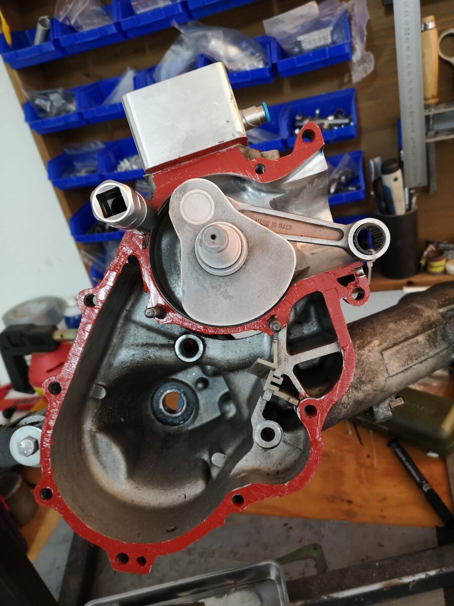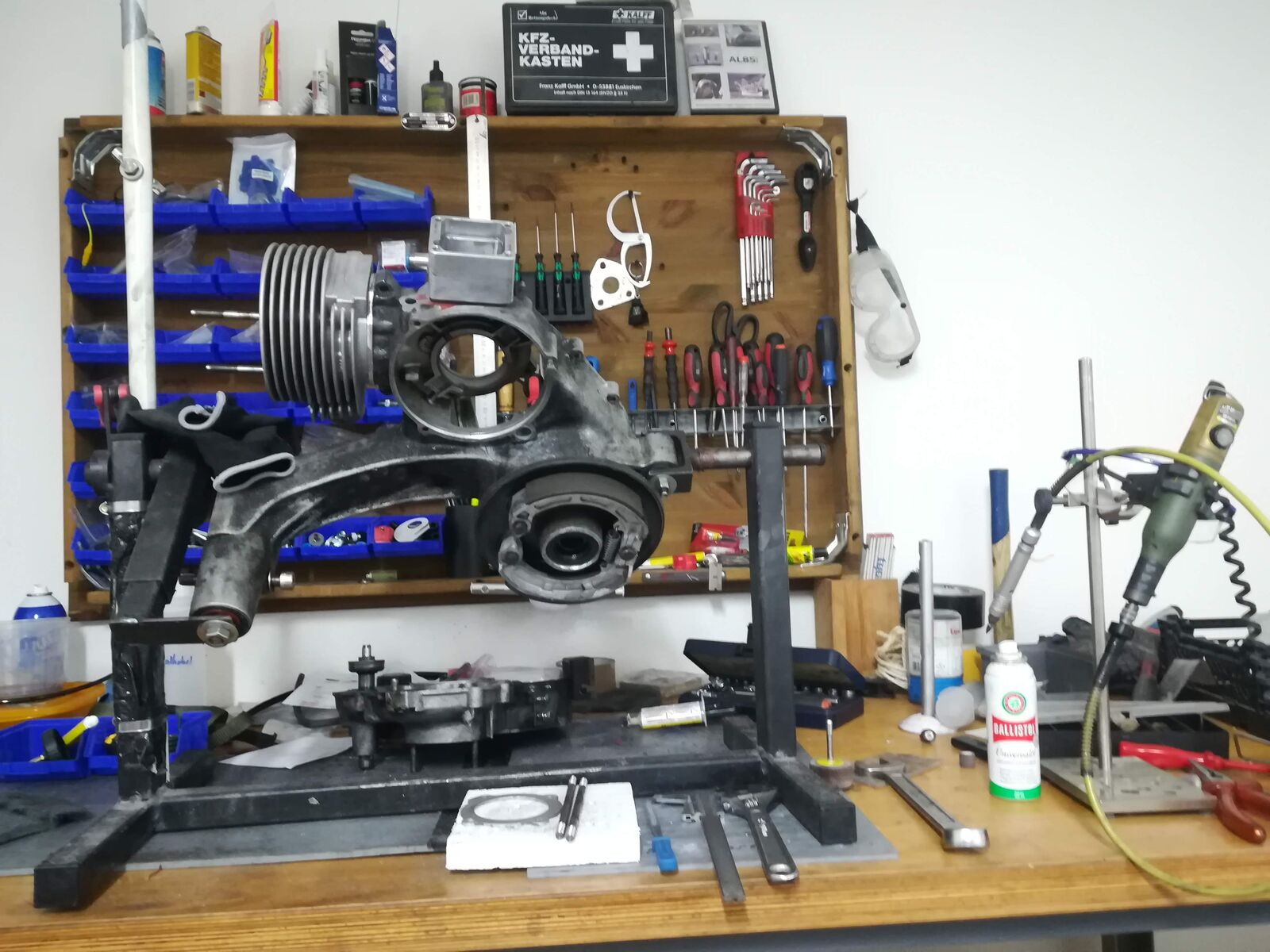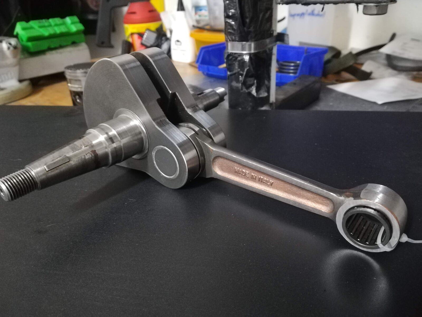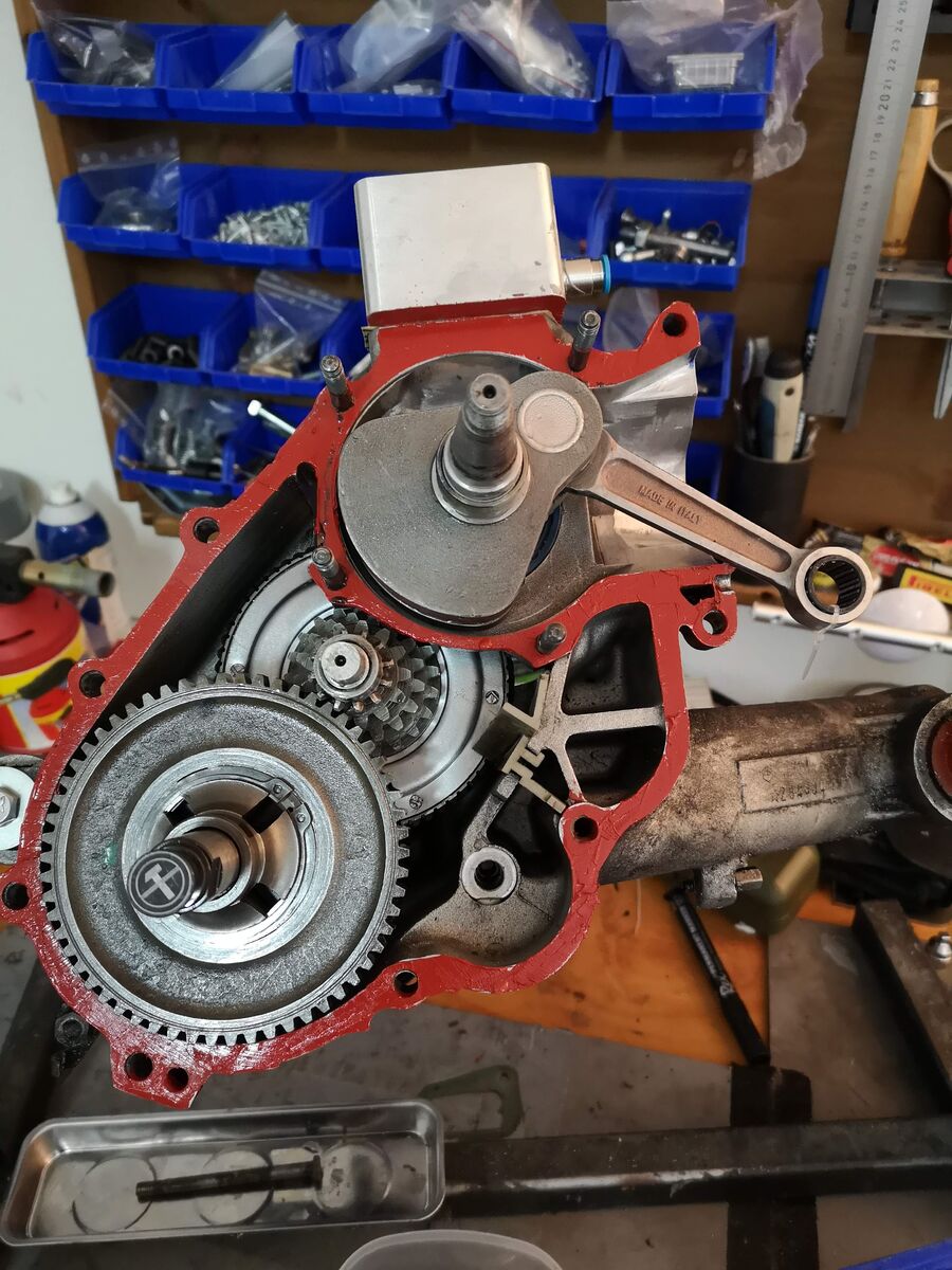 Kurbelwelle wurde vom Flexkiller (GSF) auch zerlegt. Wollten ein anderes Pleuel einbauen, das war aber leider zu breit. Mal schauen wie es da weiter geht.