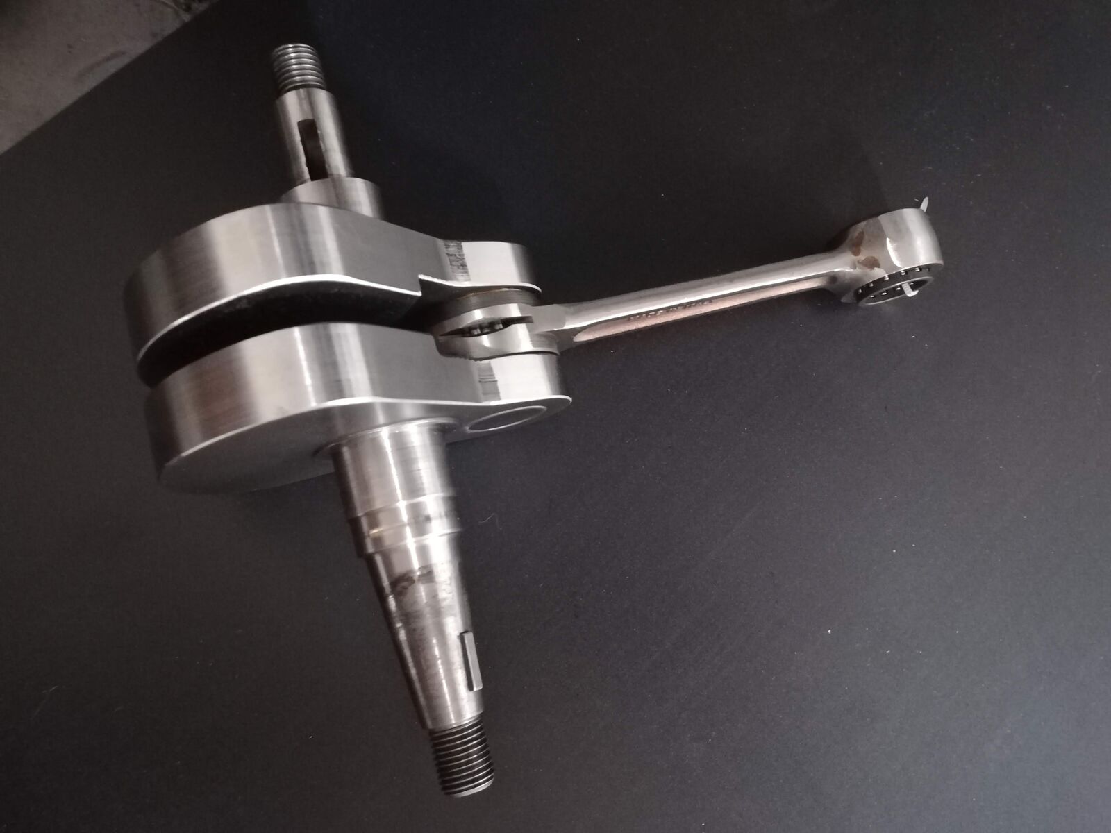 Die Welle hab ich zum Flexkiller gegeben. Der hat ein Mazzu Pleuel eingebaut und den Hubzapfen verschweisst. Nun ist die Welle wieder Pfennigfrisch.