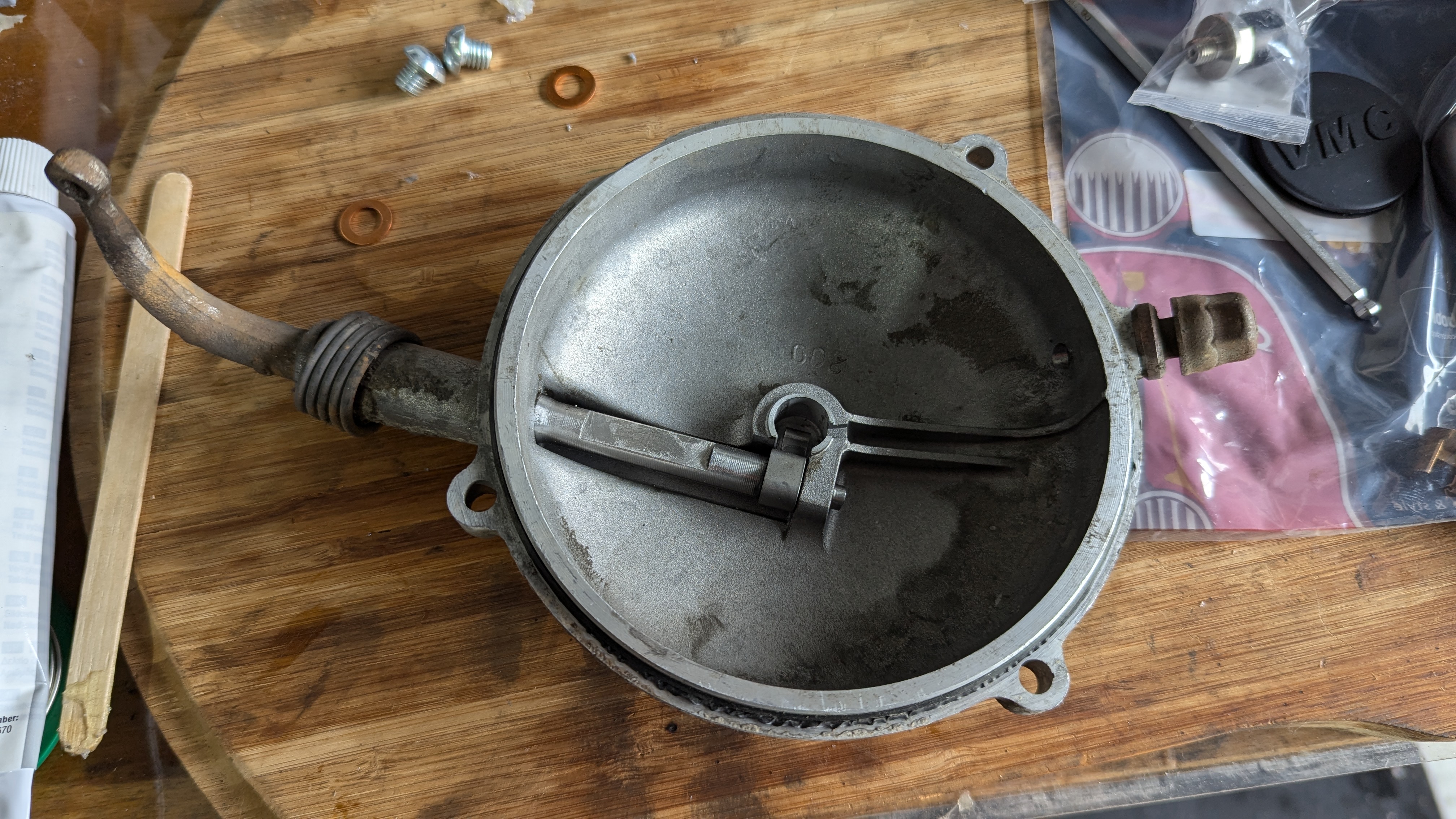 )Hab mir einen gebrauchten 200er Kupplungsdeckel besorgt, den hab ich ausgeschliffen damit die Kupplung nicht schleift.