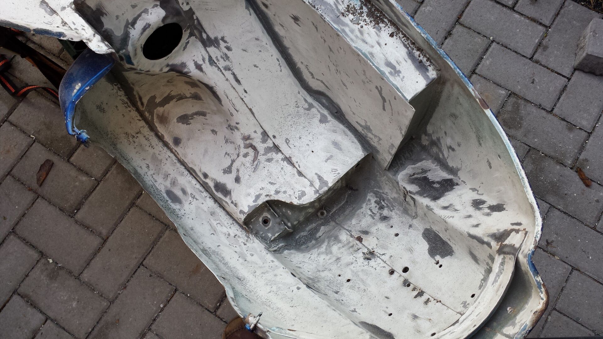 Vom Rost her sieht's doch ganz gut aus, oder?was ist im Bereich Übergang Trittblech / Beinschild für ein Blechstreifen ??