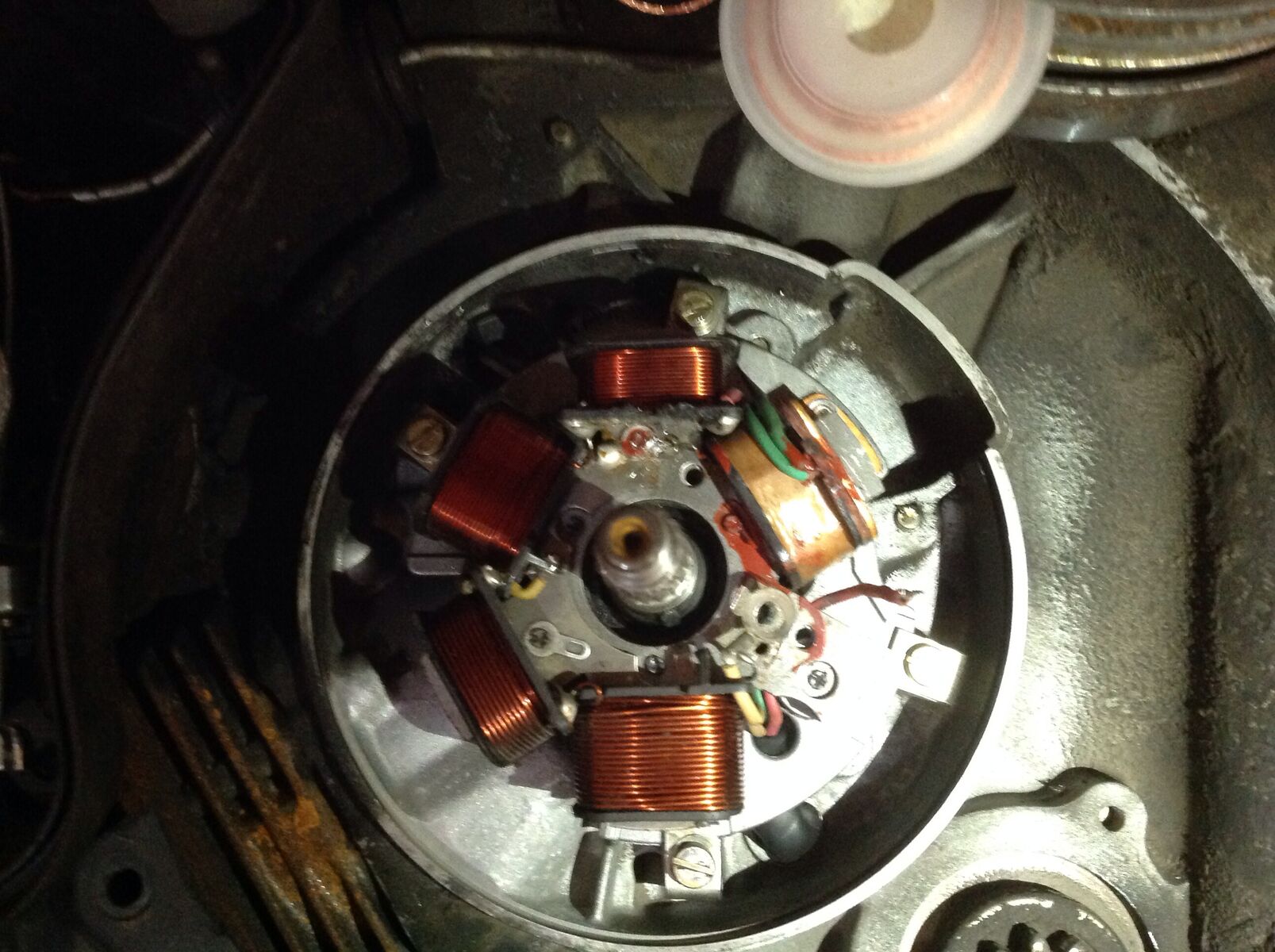 Nun habe ich eine Frage: da ist ein Loch in der Zündgrundplatte, in den anderen sind Nieten, muss da was rein?