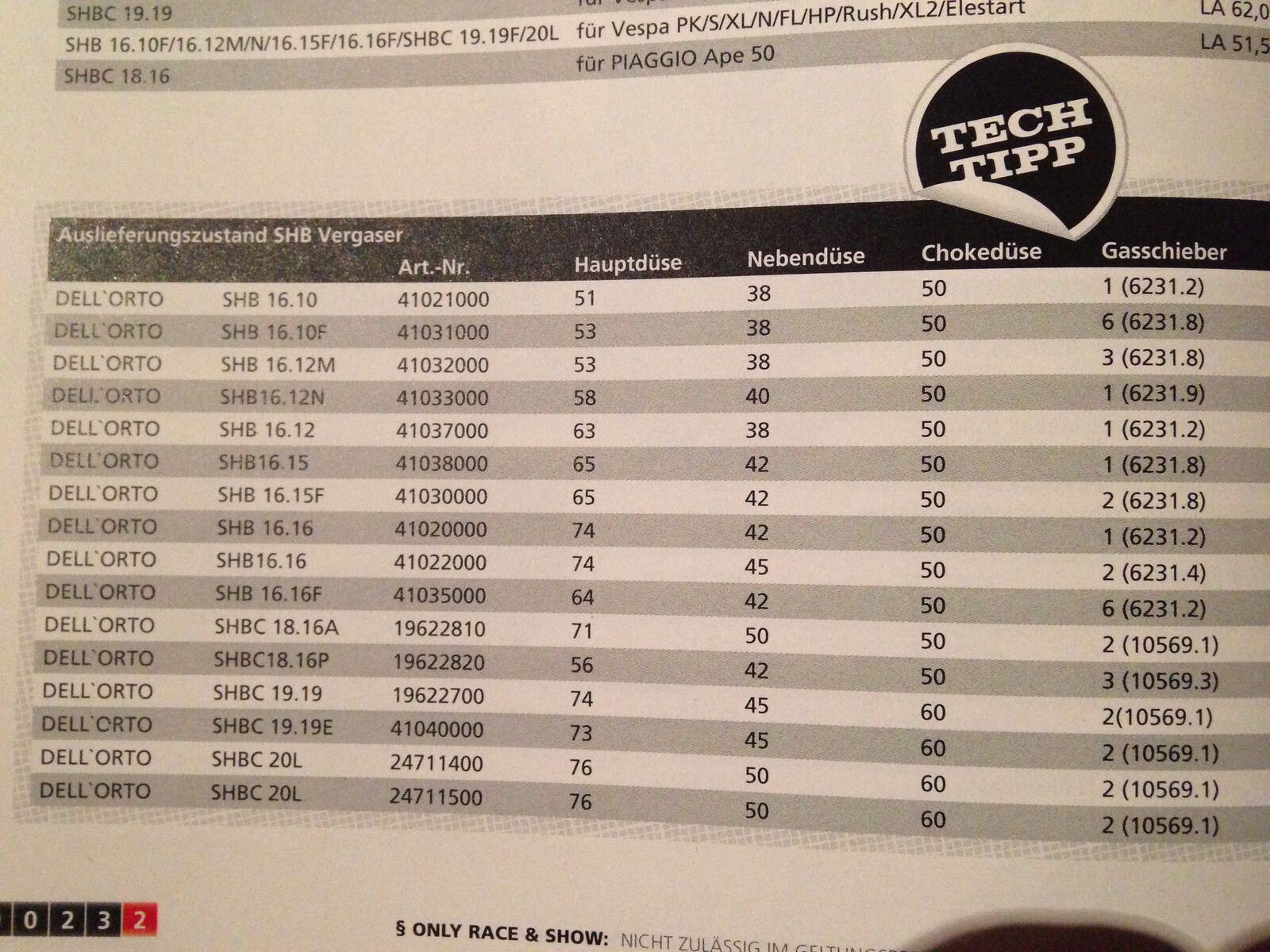 HD und ND bei 19/19 SHB Dellorto?