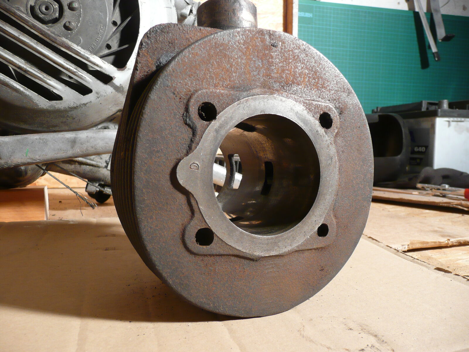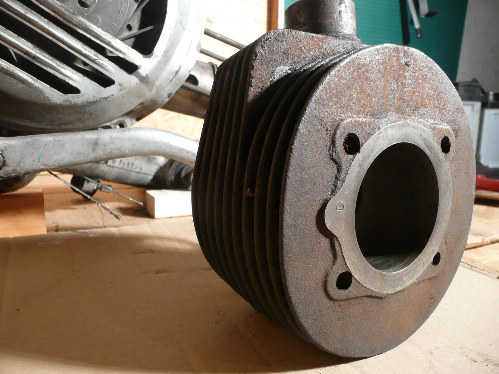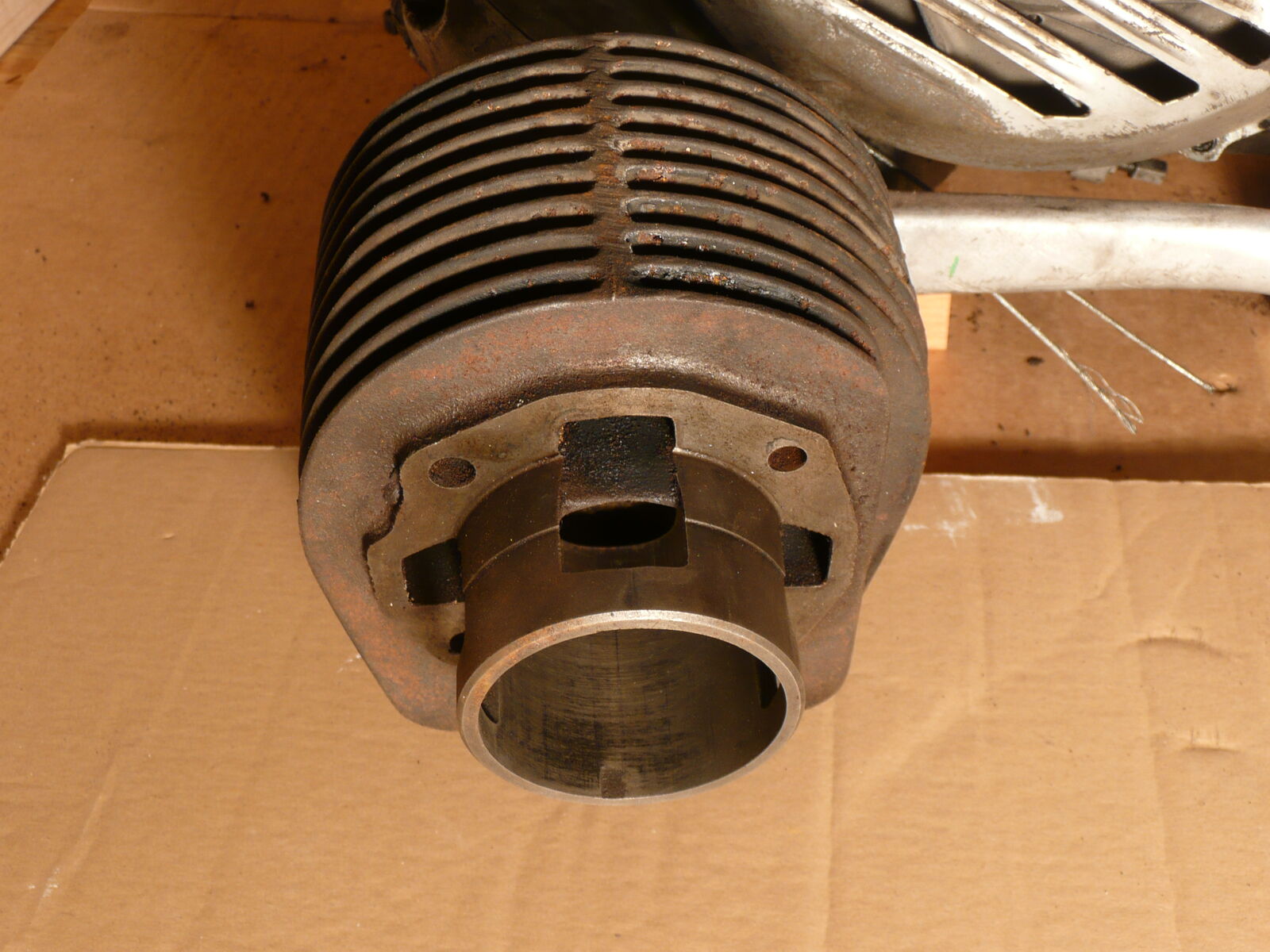 Der Kopf ist OK, alle Rippen sind dran, die Dichtfläche weist in Richtung Auspuff paar kleine Kratzer auf, da hat der Vorgänger bestimmt mal mit nem Schraubenzieher rumgefummelt.