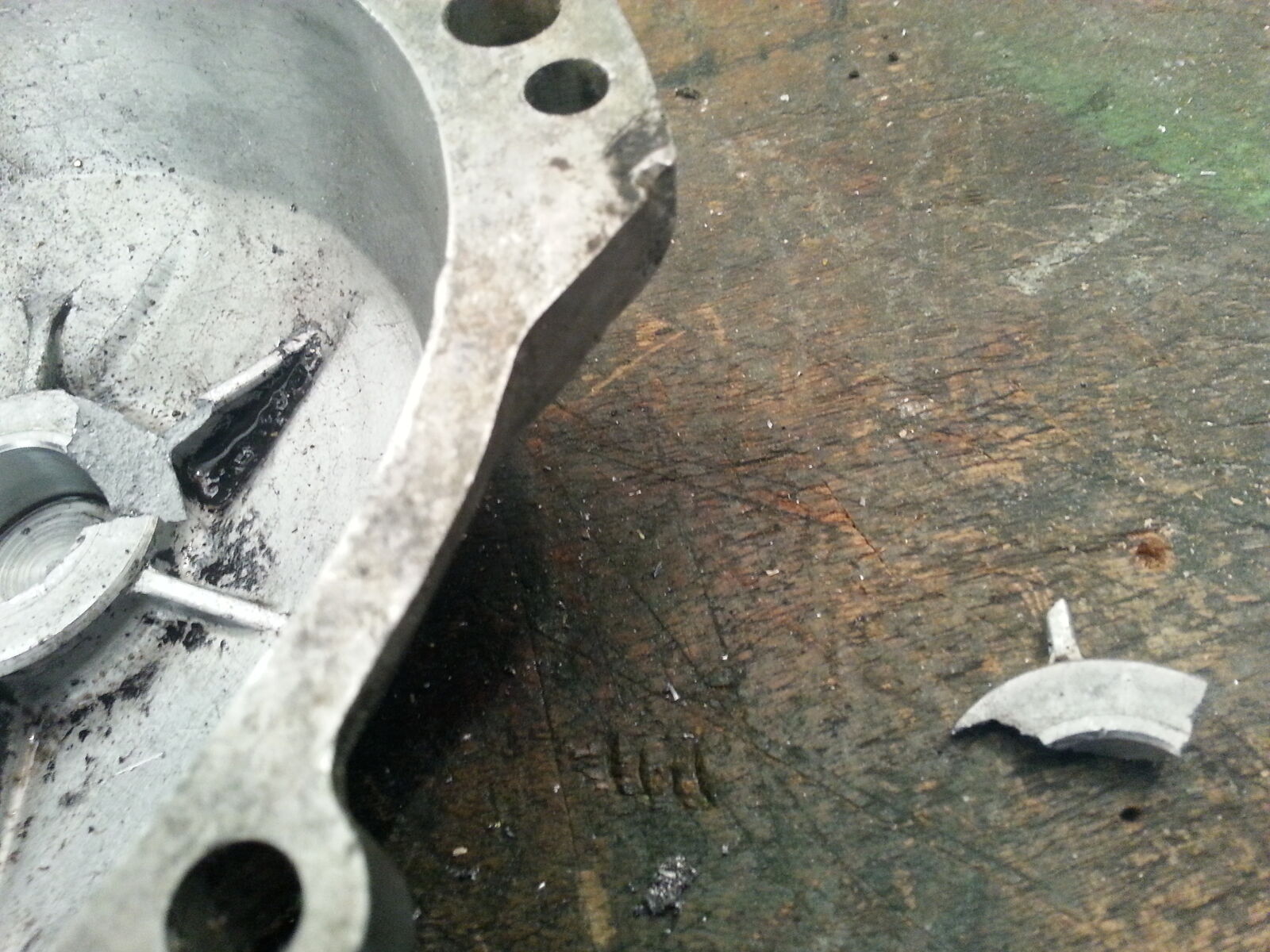 beim Zerlegen meines Motors war ein Lager leider etwas bockig....und promt ist ein Stück vom Lagersitz mit ausgebrochen...