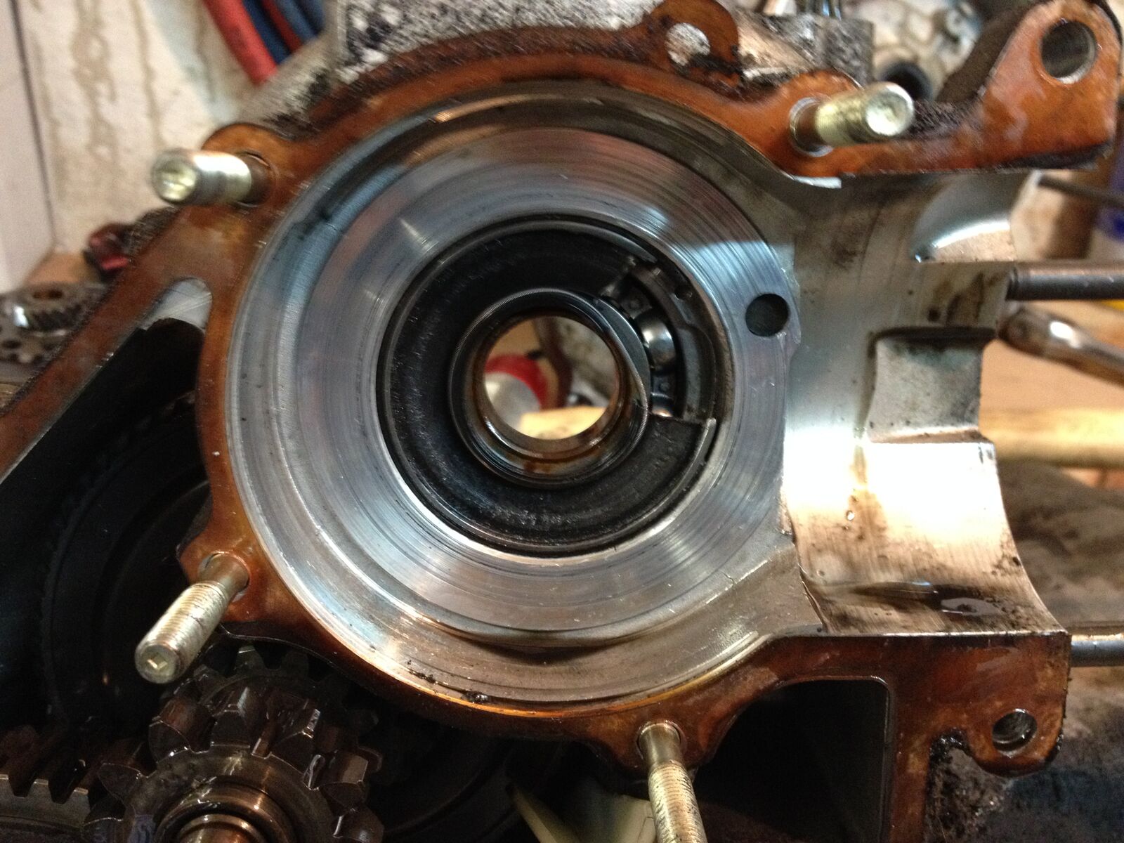 • Mir ist aber bis jetzt nicht klar, wie sowas passieren kann. Ok, der Simmering war recht locker ohne Loctite eingesetzt, Ich könnte nur vermuten, dass er sich gelöst hat und dann gegen die Schwungmasse gekommen ist. Wie sollte sonst solch ein Stück herausreißen. Vom KuLu lager bestimmt nicht. Kommt sowas eigentlich öfter vor?