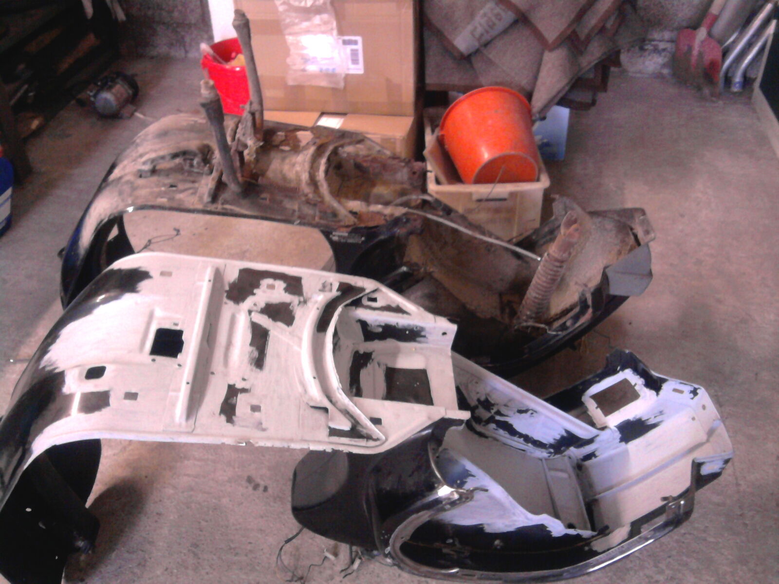 Wie sind die mit der Vespa gefahren? Der hintere Stoßdämpfer ist beim Motorausbau schon mal aus der Blechverstärkung ausgerissen, so morsch ist das Heck!!! Und der Motor erstmal. Den konnte man garnicht erkennen soviel Dreck war da drauf. Ich denke mal von den letzten 15 jahren!! -