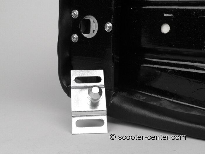 Das Teil nennt sich Sitzbankzapfen und wird anstatt des jetzt verbauten Sitzbankhakens verbaut. Löcher brauchst Du nicht zu bohren, die sind schon da. Und da der Zapfen Langlöcher hat, kannst Du die Bank optimal positionieren.