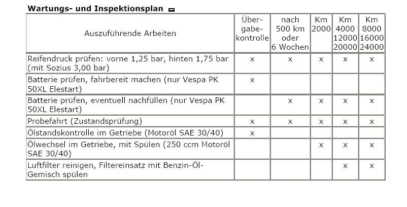 June 6, 2008 at 10:00 #2 Luftfilter brauchst gar nicht wechseln - ausbauen und in Benzin auswaschen, evtl. mit Druckluft ausblasen, danach etwas einölen und gut.Getriebeöl würd ich alle 1-2 Jahre wechseln. Ölstand aber öfter mal kontrollieren.