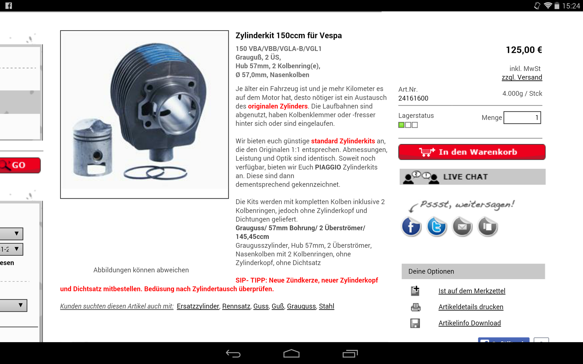 Ich möchte aber nur einen neuen Zylinder + Kolben. Das Budget langt leider nicht für ein Mega Tuning Set.
