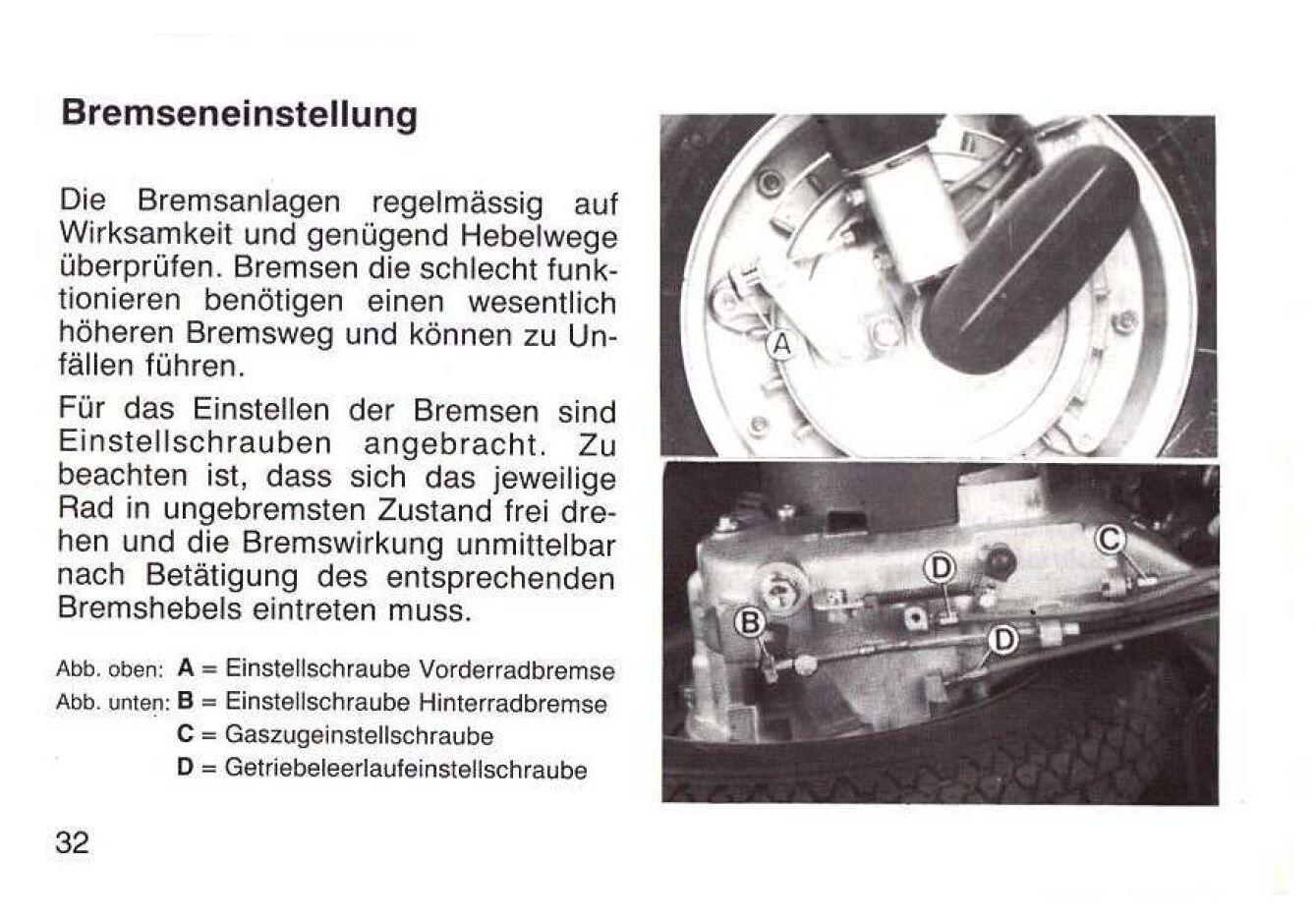 Hi auf dem Bild ist Einstellschraube des Shokezugs zu sehen. Die gehört folgender maßen eingestellt. Deckel vom Luftfiltergehäuse abnehmen und an der Einstellschraube die Zuglänge so einstellen, das dieser in Ruhestellung ein bisschen Luft hat. die Schraube zum Einstellen des Leerlaufs ragt aus dem Lufideckel heraus. Die Shokewippe ist oberhalb des Vergasers zu sehen. die Einstellschraube für den Gaszug ist auf dem zweiten Bild zu sehen. Und lies mal die angehängte Bedienungsanleitung.