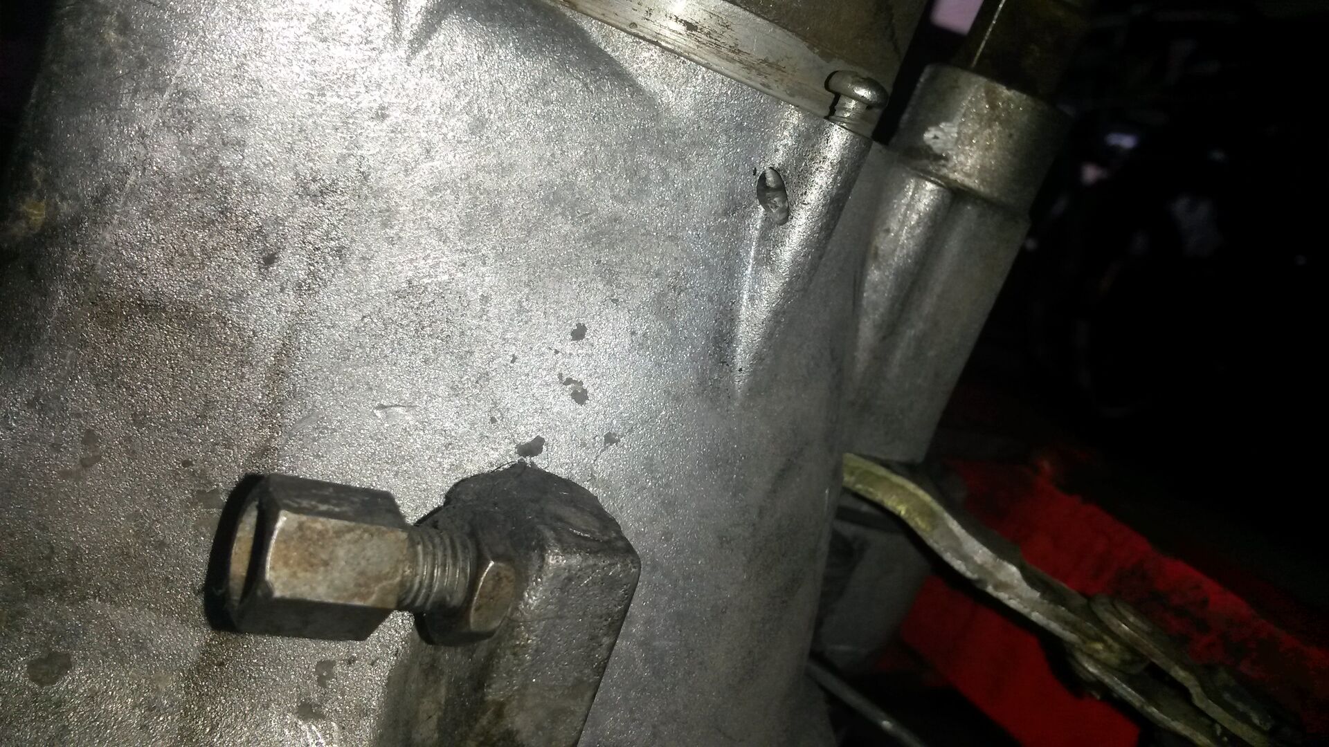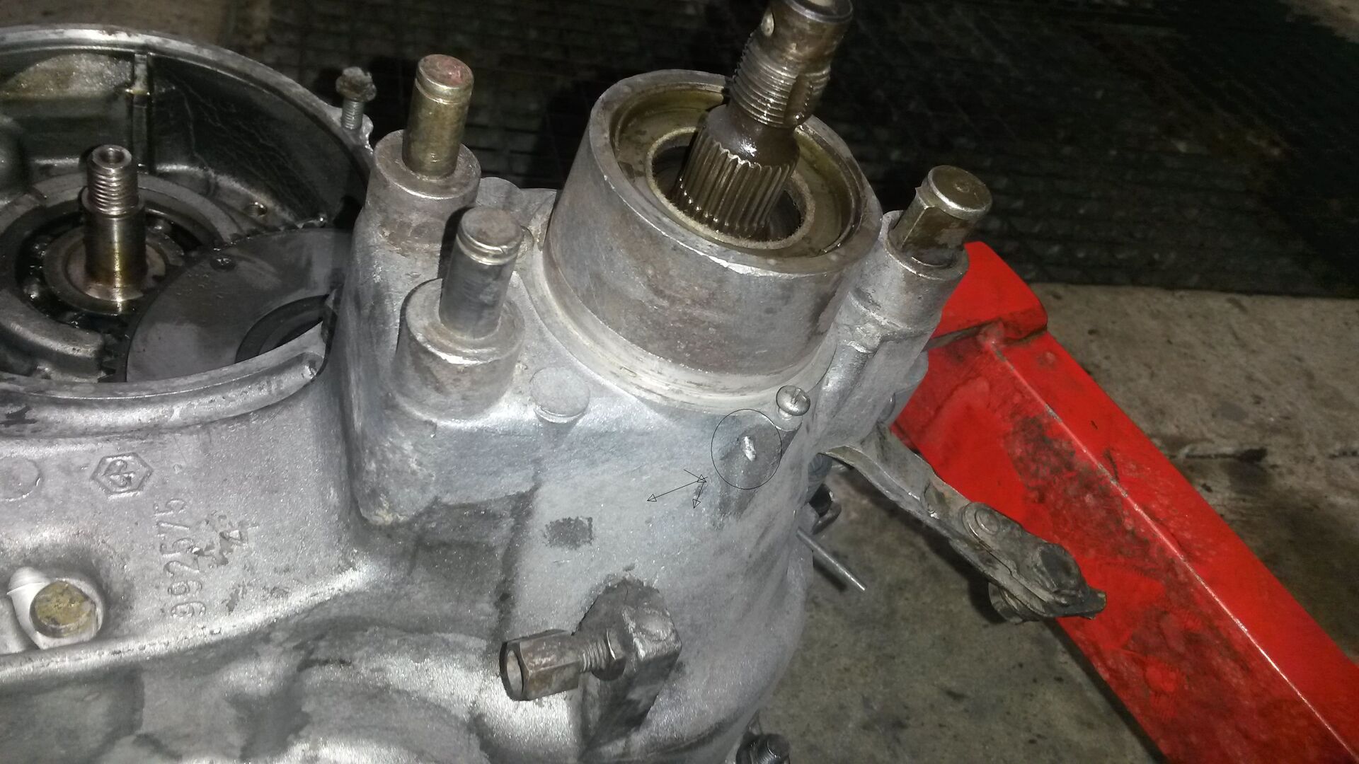 Habe mir einen PX125 Motor zum Aufbereiten zugelegt. Beim Reinigen des Gehäuses ist mir hinten an der Gehäuseunterseite (Bereich Bremsankerplatte) eine Bohrung (schwach eingekreist auf dem Bild) aufgefallen? Weiß jemand, wozu die ist?