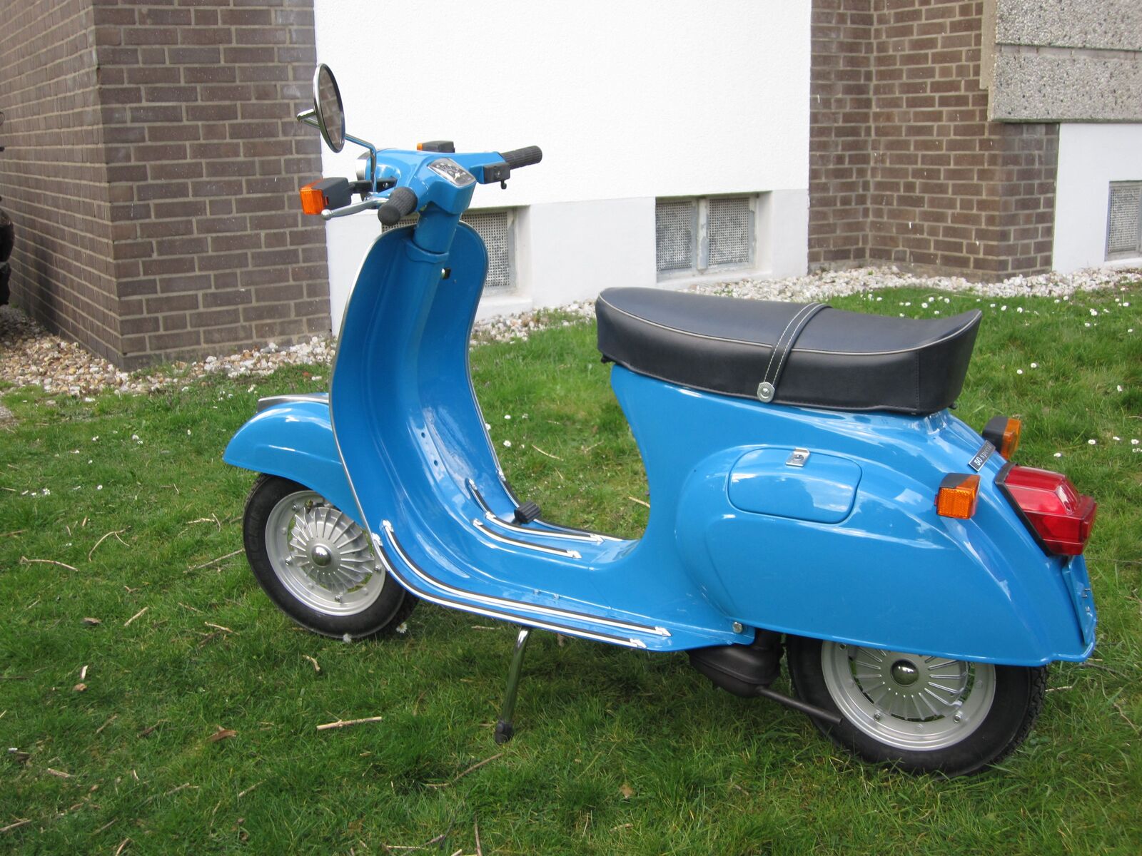 • Richtig, aber ohne linken Seitendeckel. Die Zweite ist baugleich und wird hellblau. Damit bin ich erst jetzt beim Motörchen, wird aber ne Komplettrestauration mit neuem Beinschild und noch ner Menge Schweißarbeiten.