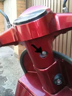 Tachoabdeckung ab (Schrauben aus Bild 2), Bremszug aus Hebel lösen,Dann die Schraube auf Bild 1 lösen. Lenker nach oben abnehmen, eventuell leichte gummihammerschläge von unten. Lenker richtung Sitzbank abklappen. Die Spezialschrauben mit dem passenden Schlüssel lösen und dann Gabel nach unten abziehen. Einer muss den Rahmen dann anheben.