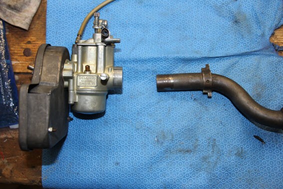 Kann mir jemand sagen, was zwischen Ansaugstutzen und Vergaser gehört (S. Photo) ?