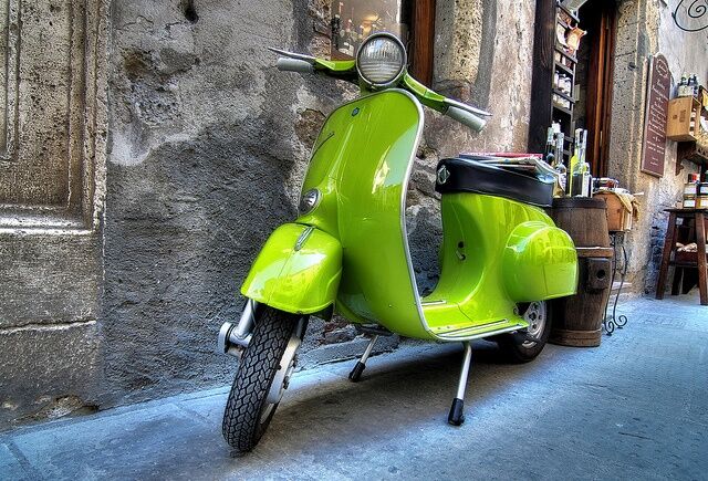 An dem Bild hat - glaub ich - wer rumgefummelt, keine Ahnung, ob das schon immer so ausgesehen hat. Aber die Farbe nennt sich Verde Mela und ist so ziemlich DIE Smallframe-Farbe schlechthin. Sieht aber eigentlich mit Kratzer, Fehlstellen und Rostansätzen am schönsten aus