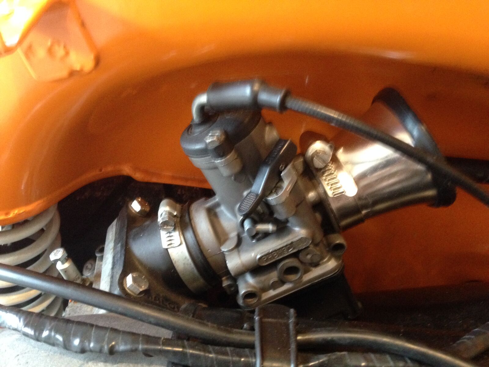 Vorab noch, was gemacht wurde. Begonnen hat das Projekt vor etwa 7 Jahren (Rahmen sandstrahlen, pulverbeschichten etc...). Motor war schon komplett (fertig) gekauft mit 207er Polini Grauguss, PHBH 30er Vergaser, Malossi Ansaugstutzen, Polini Sportauspuff (righthand). Nachdem das Projekt irgendwann ins Stocken kam (keine Zeit, kein Platz zum Basteln...) habe ich die Vespa "fertig" Zusammenbauen lassen, sodass sie angesprungen ist und lief. Auf Grund des knappen Budgets, war noch der Vergaser und Kupplung einzustellen. Aber wie gesagt, sie sprang auf dem ersten Kick an und lief - wenn auch etwas zu fett, sodass sie das Stottern anfing wenn man etwas Gas gegeben hat. Auch war die Kupplung nicht 100% eingestellt, sodass sie beim Einlegen des ersten Gangs und gezogener Kupplung sie schon etwas anzog. Sprich die Kupplung hat nicht vollständig getrennt. Ich muss dazu noch sagen, dass ich - als ich mit dem Projekt begonnen habe - die alten Beläge gegen 4 verstärkte mit stärkeren Federn gewechselt habe. Die Kupplung lag dann 6-7 Jahre ausgebaut in einer Kiste und wurde dann so eingesetzt.