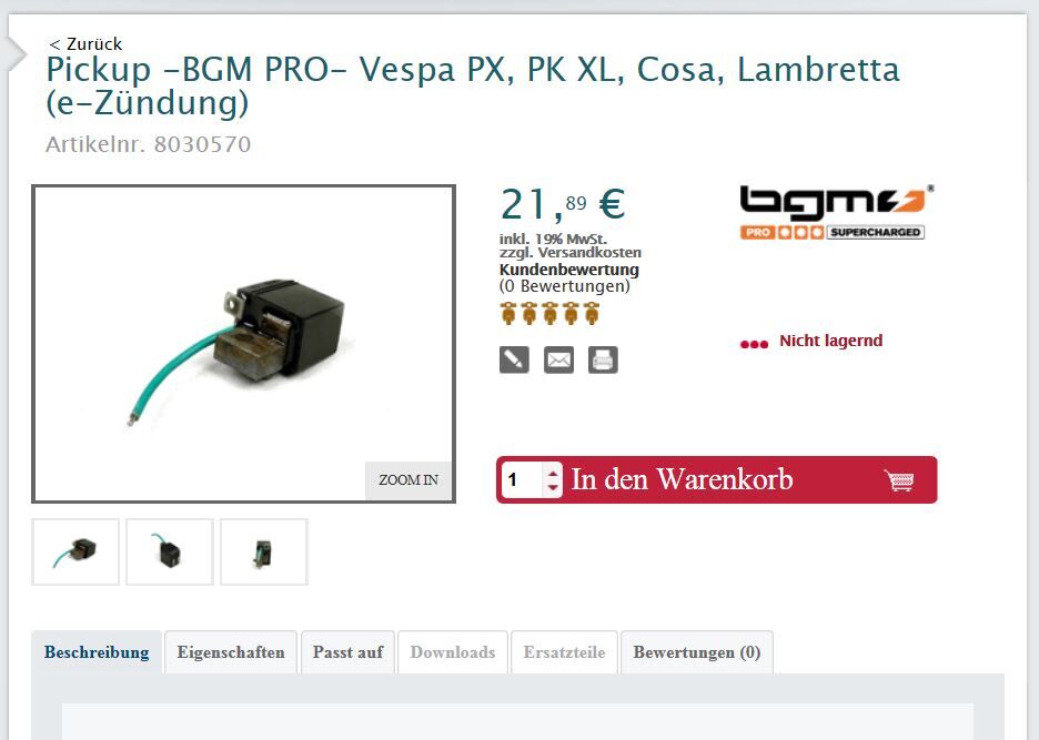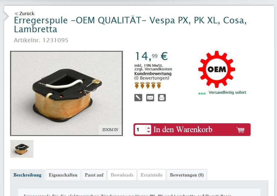 Ich habe jedoch Probleme bei der Typenidentifizierung unserer Vespa um festzustellen, ob diese Zündgrundplatte auch passt. Hilfe zur Bestimmung des Typenschlüssels habe ich auf diversen Seiten gefunden, jedoch leider keine eindeutige.