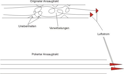 Das Polieren vom Ansaugstutzen genügt in der Regel nicht. Du musst nen kompletten Ansaugtrakt polieren. Das bedeutet du musst Ansaugstutzen, Spülkanäle, Kurbelghäuse und eventuelle auch Vergaser polieren. Polieren heißt hier aber nicht das du auf Hochglanz polierst, sondern auf ein möglichst ebene Fläche ohne Grate und Macken kommst.