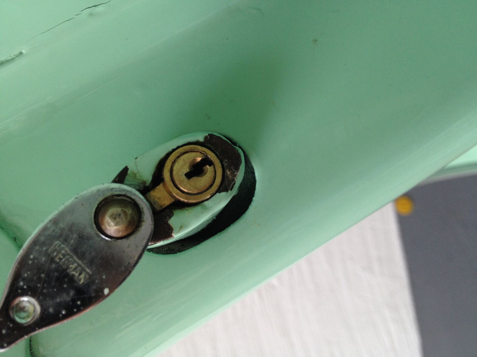 heißt das das schloss unter der abdeckung rausrutscht oder das es vom abgeschlossenen zustand in den aufgeschlossenen springt? das richtige schloss hast du?