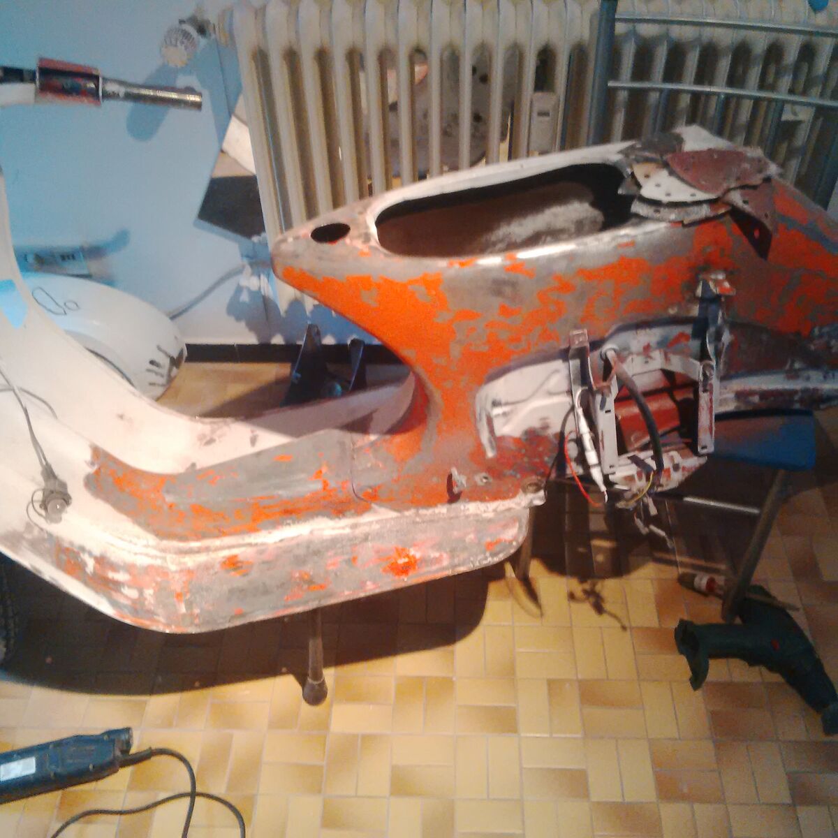 Flex mit topf bürste und Aufsätze für die Bohrmaschine, dremmel wäre auch vorhandenMöchte die vespa von meiner Hand aus aufbauen