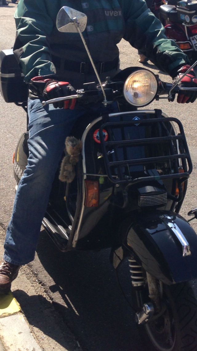 -für das Wochenende war so ein originaler Vespakoffer montiert (kann man auf den Fotos erkennen). Auf diesen waren diverse Vespaclub Aufkleber und so Leuchtsterne angebracht