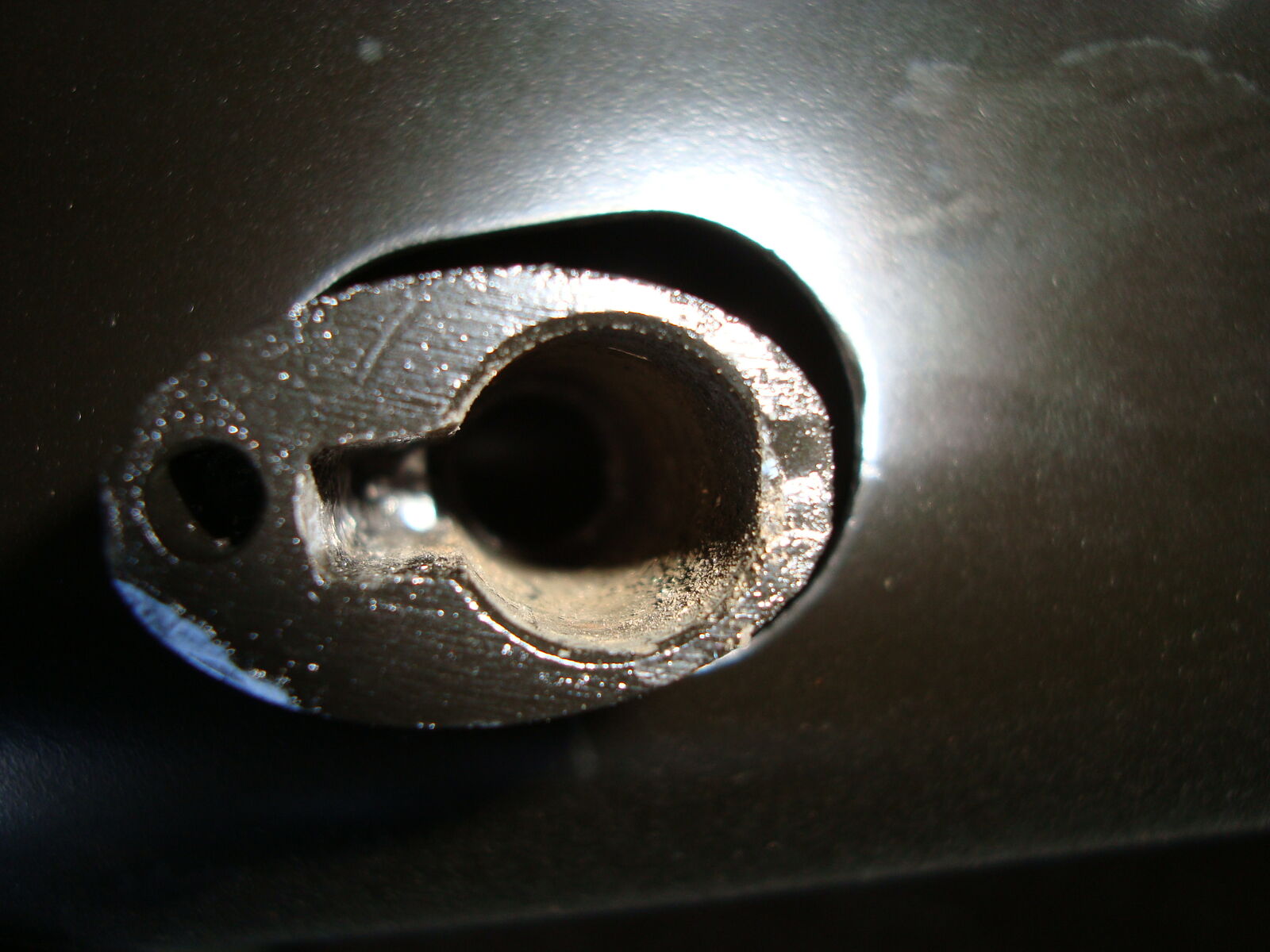 Hi ja Du musst noch tiefer bohren, denn in den Stück was noch drin ist, sitzen die Zuhaltungen und die Halteschraube. Wenn Du dir mal das neue anschaust wirst Du das verstehen. Entweder musst Du so weit bohren, dass Du mit einem Schraubendreher wieder "schließen" kannst, oder so weit dass die Schraube raus fällt.