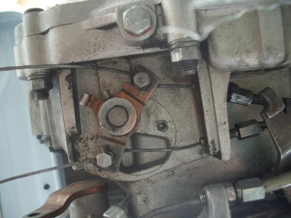 bei einer V50 (V5B3T) ist eine der beiden Einstellschrauben für die Schaltzüge abgebrochen. Es ist die, die gerade - nicht schräg - drin steckt (auf dem Bild die untere).