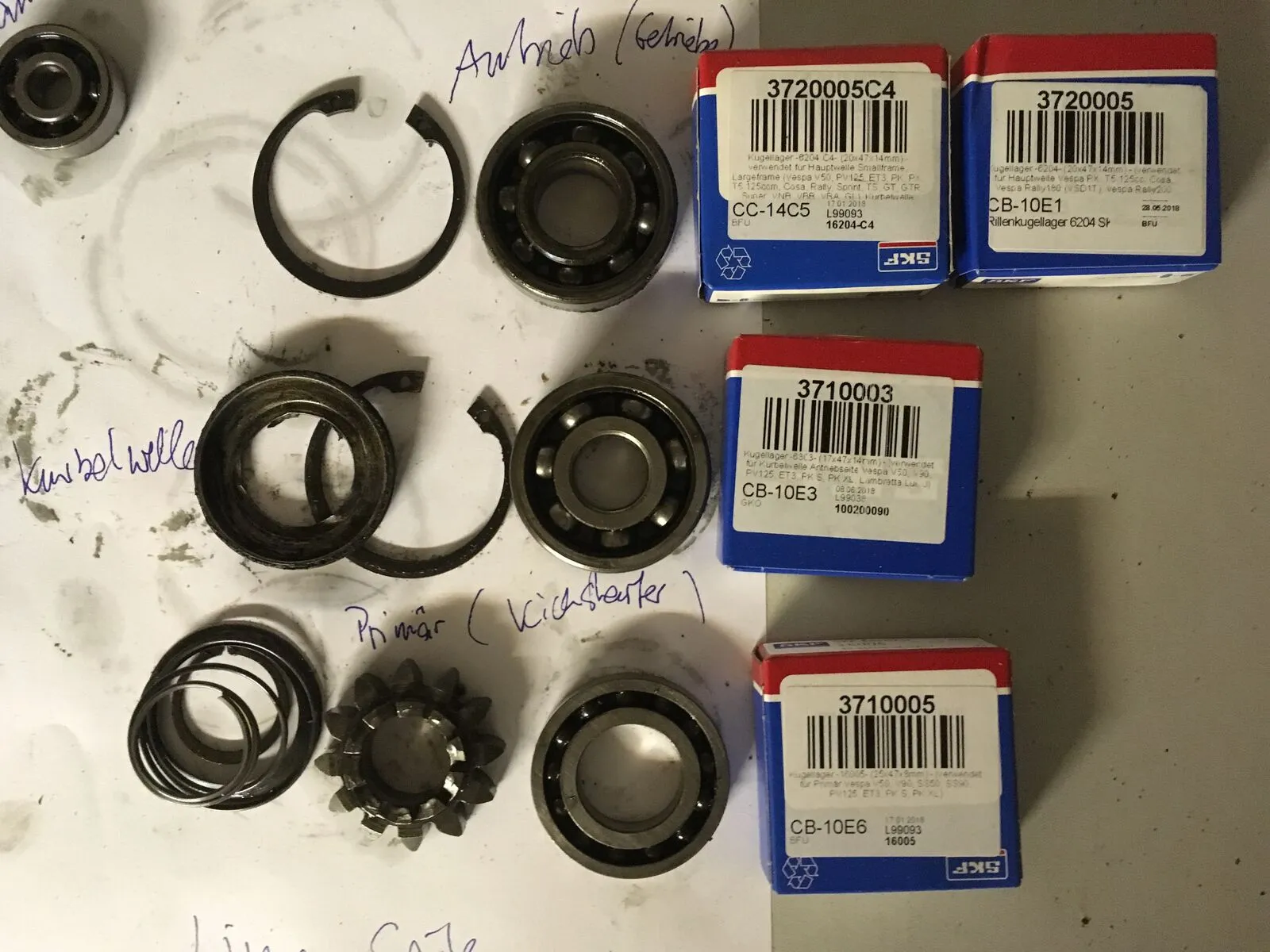 Den Laufring zu entfernen ist etwas tricky. Ich nehme da eine Korundschleifstift und einen besseren Feinbohrschleifer und fräse einen Spalt rein, dann kann man den Ring gut entfernen.Mach doch mal nen Photoshot von der Motoridentnummer bitte, rein interessehalber.