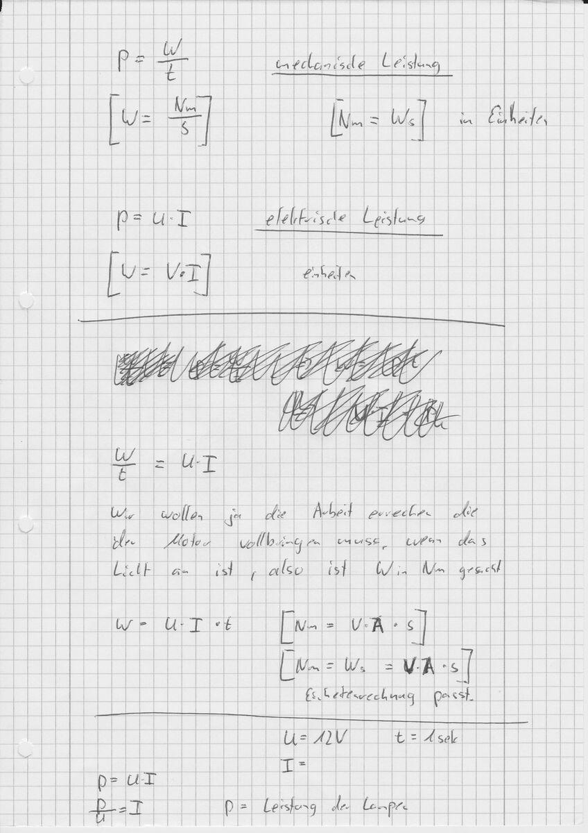 ich hab mir gerade mal die formel für mechanische leistung raus gesucht. und dann mal ein bisschen gerechnet. hoffe es ist leserlich. sicherlich wird die leistung nie, wirklich ganz 0 sein die abfällt, da der spannungsregler ja auch ein verbraucher ist, aber die leistung die durch das licht gebraucht wird, die fällt defintiv einfach weg, wenn das licht aus ist.