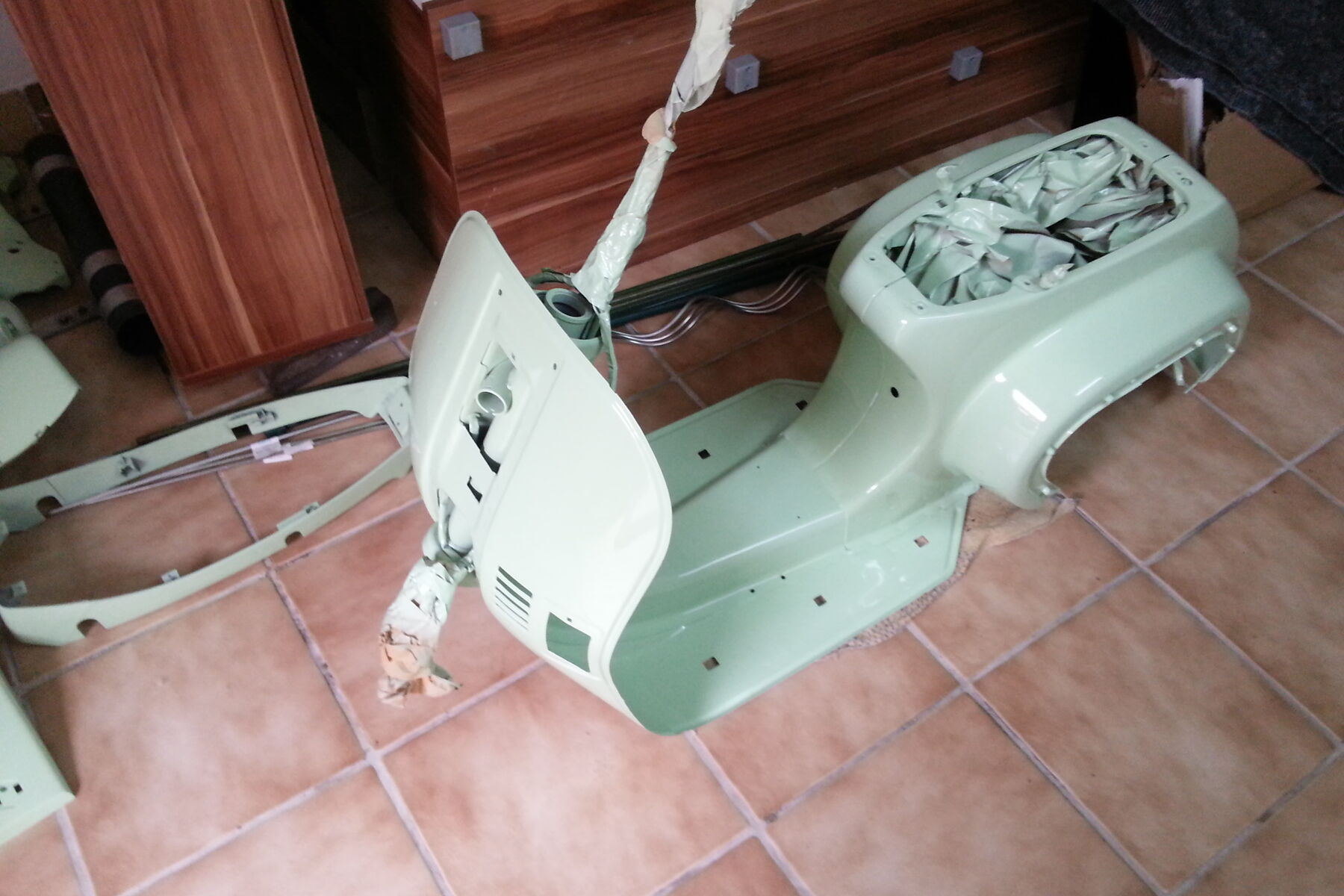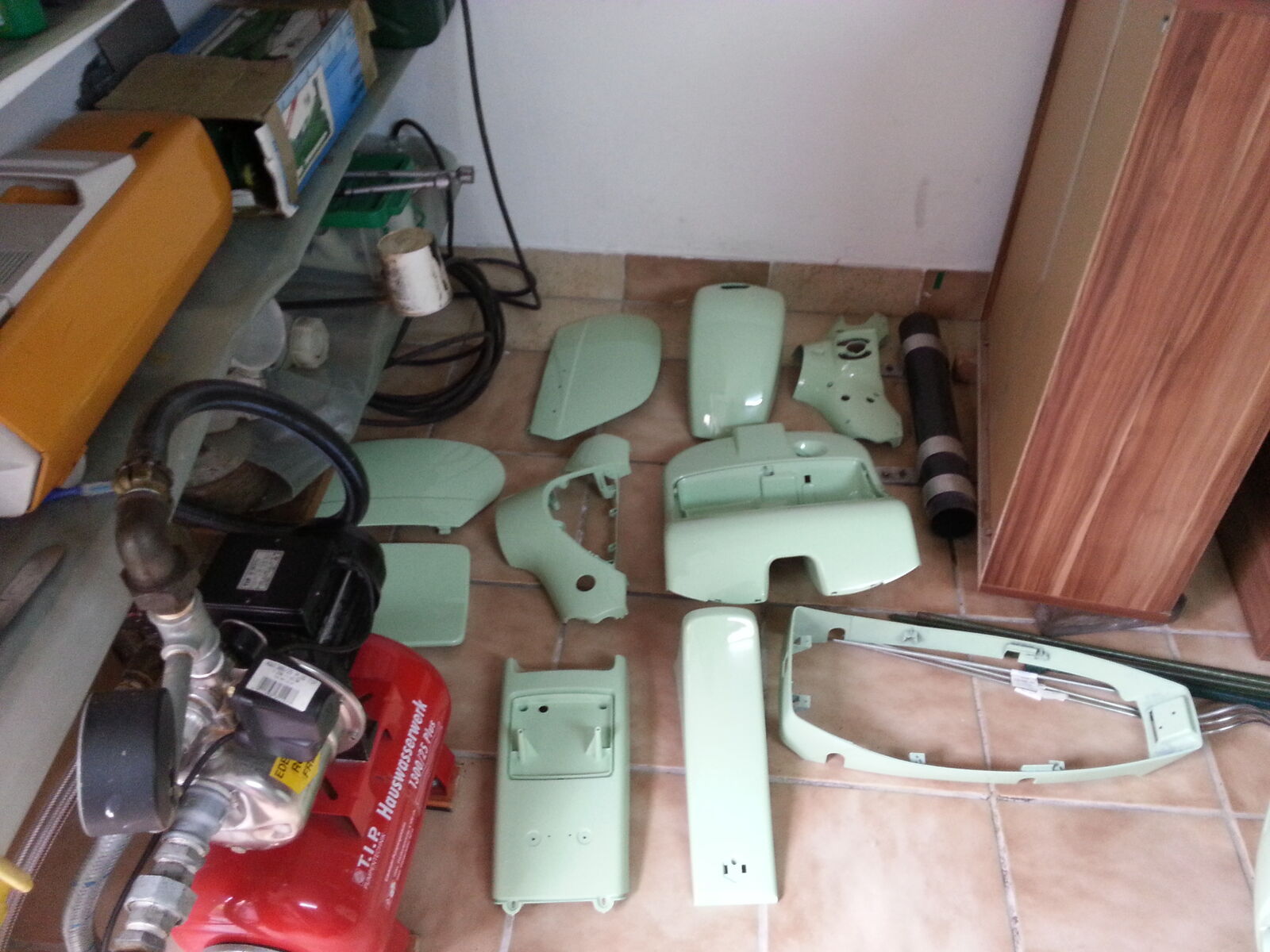 möchte mich erst mal kurz vorstellen. Ich heiße Julian bin 24 Jahre alt und besitze seid einem Jahr eine Vespa PK 50 XL2. Nun habe ich diese im Winter komplett auseinander genommen. Den Motor habe ich komplett überholt und den rest der Vespa in Verde lackieren lassen. Nun ist der Winter schon ein bisschen her und befinde mich immernoch in der Zusammenbauphase. Anbei Fotos direkt nach dem abholen vom Lackierer. Zurzeit hänge in am Lenker.