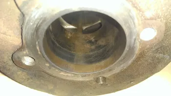aber ich habe die vermutung, dass das pleul samt kolben eine leichte schrägstellung hat. würde auch den blowby an nur einer seite des kolbens erklären. kann auch sein, dass die zylinderfläche schon ein wenig eingelaufen ist!? will ja die kiste nicht in mühevoller arbeit zusammen bauen und dann ist das mist. mein arbeitskollege hat mir direkt zu einem neuen 75er zylinder, kolben und kurbelwelle geraten...