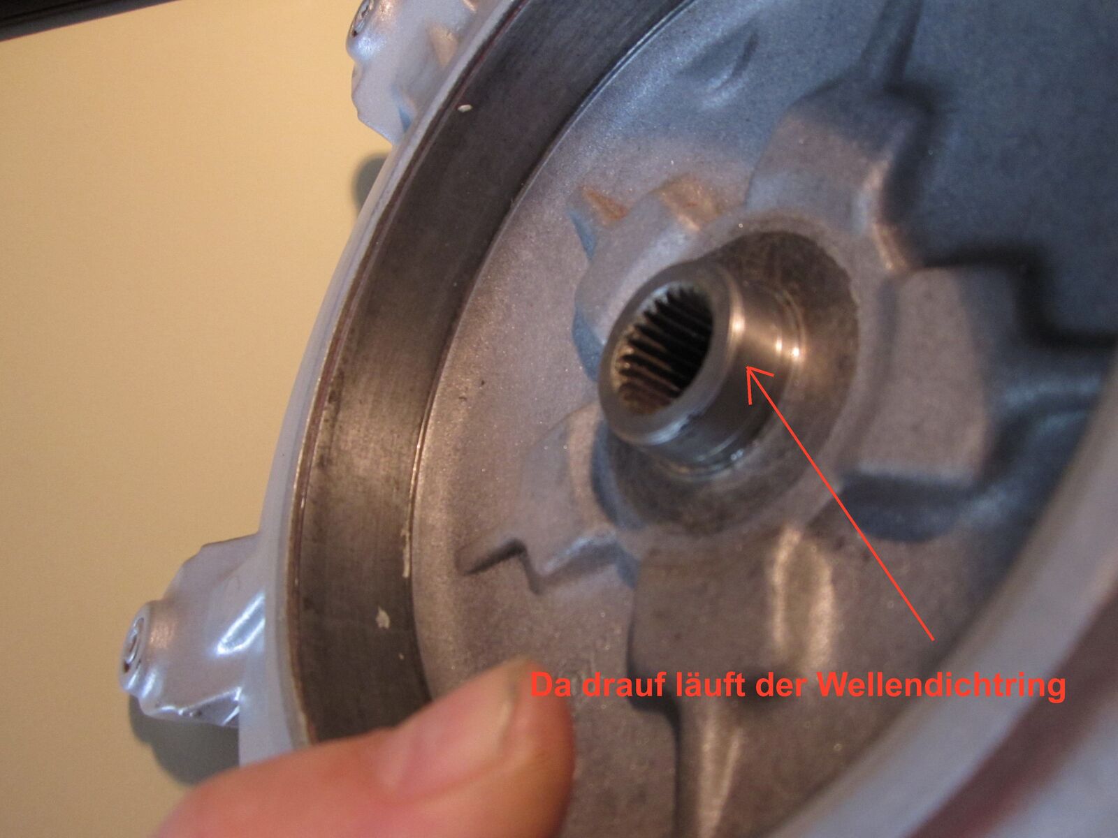 Jetzt das andere Problem: Nachdem das hinterrad ab war ist aus der Antriebswelle massiv Öl ausgelaufen, wirklich viel, als wäre gar keine Dichtung mehr da drin. Gehe ich richtig in der Annahme, dass man einfach nur den Gehäusedeckel auf der linken Seite abschrauben muss, um einen neuen Simmering einzusetzen?