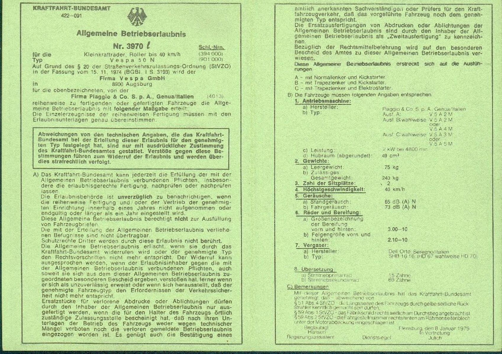 Jezt muss ich leider erst zum Tüv um eine deutsche Betriebserlaubnis zu erhalten (diese brauche ich doch um die Vespa richtig bei der Versicherung anzumelden).