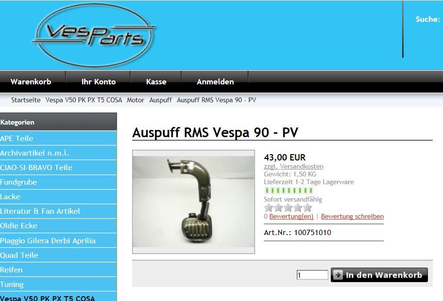 Was ich nicht verstehe: Erstens ist der Auspuff für die Vespa 50N angegeben, zum anderen findet man nur diese Art von Auspuff im Netz.