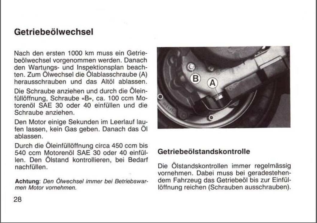 • Hi ich hab da so ein Verdacht, wenn der Riementrieb unter der Verkleidung so wie auf dem Bild ausschaut, ist das Öl falsch, Dexron ist ein Automatik-Öl, auf dem Bild ist aber eine Variomatik, da kommt KEIN Automatiköl rein, sondern Motoröl SAE 30 oder 40 (oder ein entsprechendes Getriebeöl mit der gleichen Viskosität), so wie auf Seite 28 beschrieben.