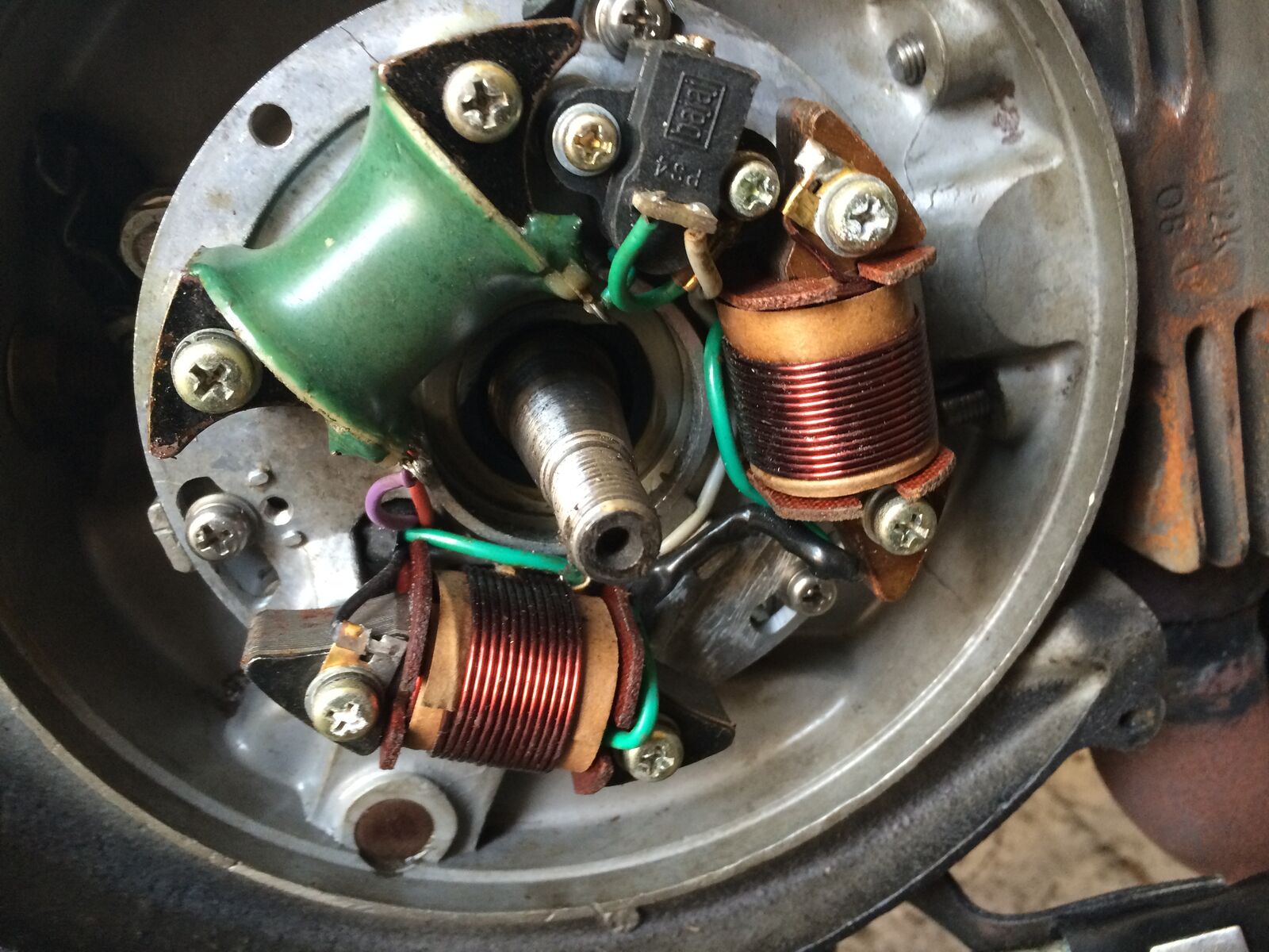 Immerhin ist die Bajaj Zündung augenscheinlich neu. Und der Vespatronic Polradabzieher passt, das iss doch ganz cool... Das Kabelkästchen ist ausgesucht von Hi Qual Ti und ganz sicher erste Klasse....