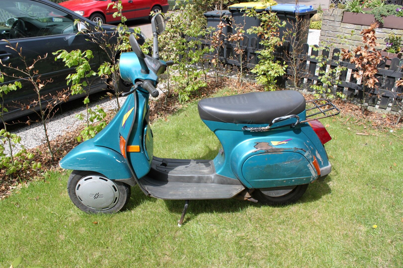 Ursprünglich habe ich die Vespa damals gekauft um sie mit meiner Tochter zu restaurieren. Wir haben sie damals für 150 EUR übernommen. Nach 2 Wochenenden schwand ihr Interesse aber erheblich, und seit dem stand die Vespa im Keller ständig im Weg.