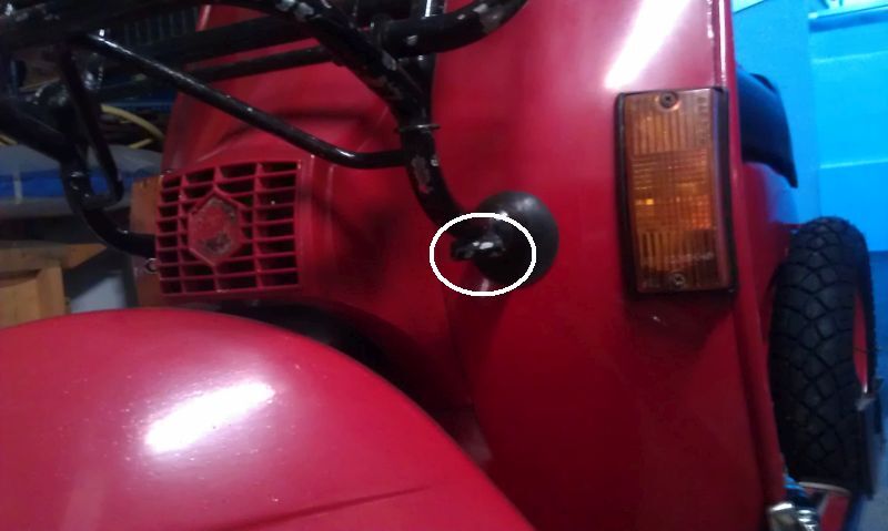 Der untere Befestigungspunkt ist weiß markiert.