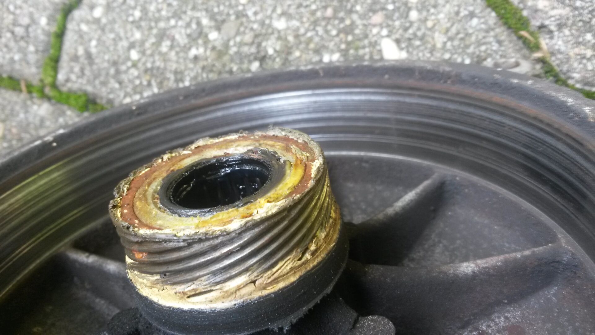 Außerdem bin ich unsicher, was ich mit den gefetteten Stellen in der Bremse machen soll. Also einmal am Gewinde in der Bremstrommel, wo auch so ein Lager drinnen ist. Da ist das fett so gelblich-schwarz. Sieht total gammlig aus (vgl Bild2). Was mache ich damit? Wegmachen und neues Fett darauf? Was für ein Fett verwendet man dort am besten? Muss ich irgendetwas beachten, damit ich nicht zu viel oder zu wenig nehme und kein Fett an Stellen kommt, wo keines hin soll? Wie kann ich überprüfen, ob die Lager noch in Ordnung sind? Wenn ich das schonmal alles offen habe, würde ich so viel wie möglich gleich überprüfen und erledigen...