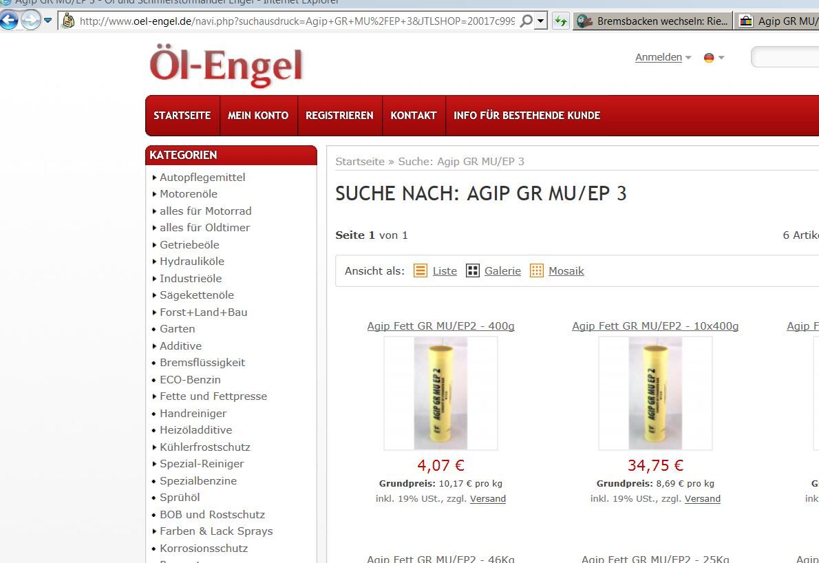 Vielen Dank! Wo bekomme ich das Fett denn her? Wenn ich es google kommt meistens nur das Agip GR MU/EP 2. Kann ich das auch für as Lager und die Tachoschnecke verwenden?