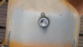 Die "Auswuchtung" ist die Öffnung die dafür sorgt das nachher Benzin fließt. Insofern gehört sie über die Löcher. Wenn du vor dem Tank sitzt, und auf den Hahn schaust, nach unten. In die Seite mit dem Schlitz in der Mitte kommt nachher die Verlängerung.