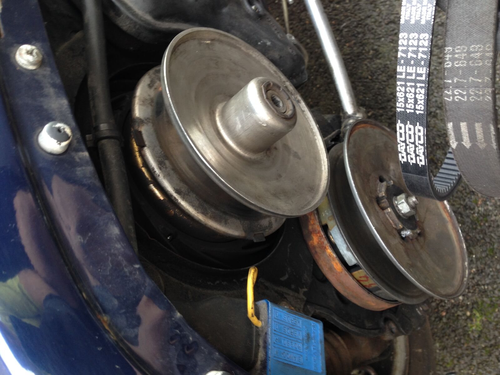 Als ich vom Hof rollte wollte ich Gas geben und ich habe das Gefühl das der Keilriemen sich zwischen den Rollen verklemmt hat. Die Drehzahl fiel ab und der Motor ist abgesoffen. Natürlich war die fahrt dann beendet und ich schob