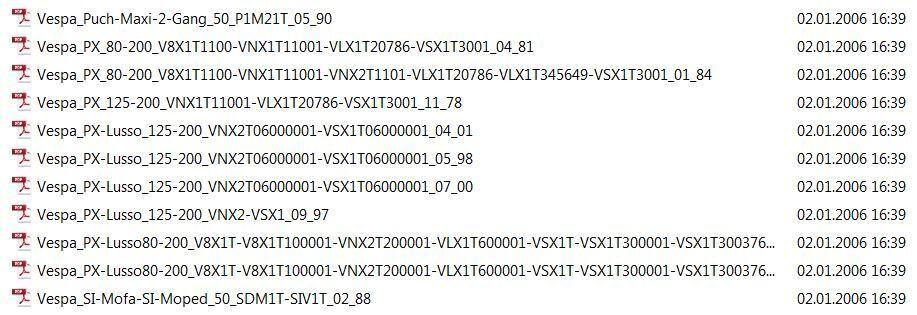 mich hätte mal interessiert, was es zu meiner Vespa( Px125 ohne Batterie, Gemischtschmierung, Baujahr 83) an Unterlagen gibt.