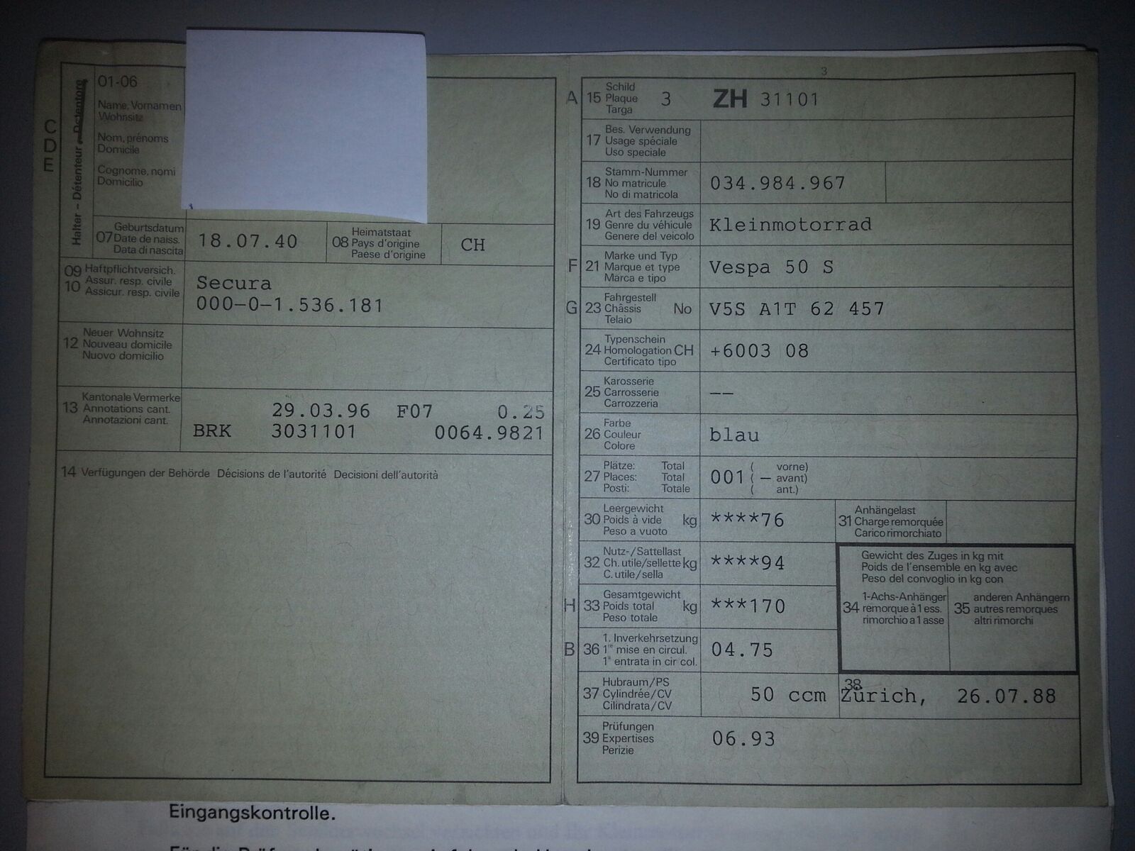 Ich bin Besitzer einer V5SA1 1. Inv. 1975 seit 26 Jahren damals hatte ich das Getriebe mit allen Ringen Lager und Dichtungen revidiert, bei km 7000, (alles gepasst) hatte das Getriebe in einem Plastiksack volle Zahnräder bekommen. Nun steht die Vespa seit 1998 unbenutzt herum. Ich habe nun an einem Verkauf gedacht. Das war eine Rechnung ohne meine Frau. Sie möchte die Vespa nicht hergeben und dass ich diese für sie bereitstelle. Wenn da nur nicht diese Schaltung wäre........