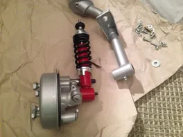 Die Gabel vorne lackiert mit alumnio 983 samt neuem Stoßdämpfer:
