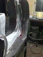 So ich konnte mich jetzt wieder der "bella-carrozzeria" widmen und habe mich nun doch für das Einschweißen eines Reparturblechs entschlossen. Hier ein paar Eindrücke vom aktuellsten Stand. Bin gerade an der Überarbeitung der Kaskade. Die musste leider dran glauben, war nicht gepunktet - sie war gepresst - vor dem Einschweißen des Reparaturblechs habe ich festgestellt, dass der Rahmentunnel mal schwer er einen abbekommen haben muss. Er war gut verzogen.