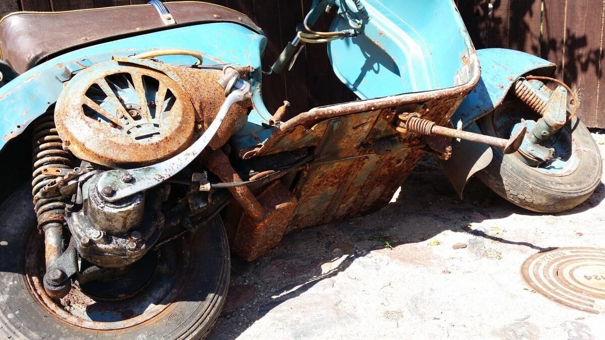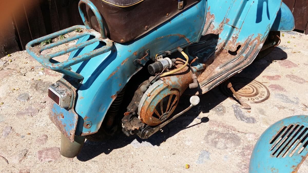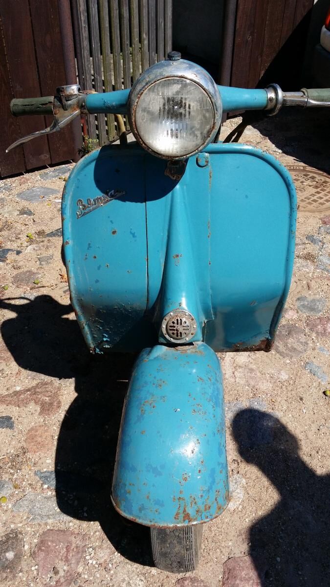 ein wenig "Flugrost", aber ansonsten soweit komplett (einzig der Zündschlüssel am Lichtschalter fehlt...leider sehr selten und teuer gehandeltes Teil)