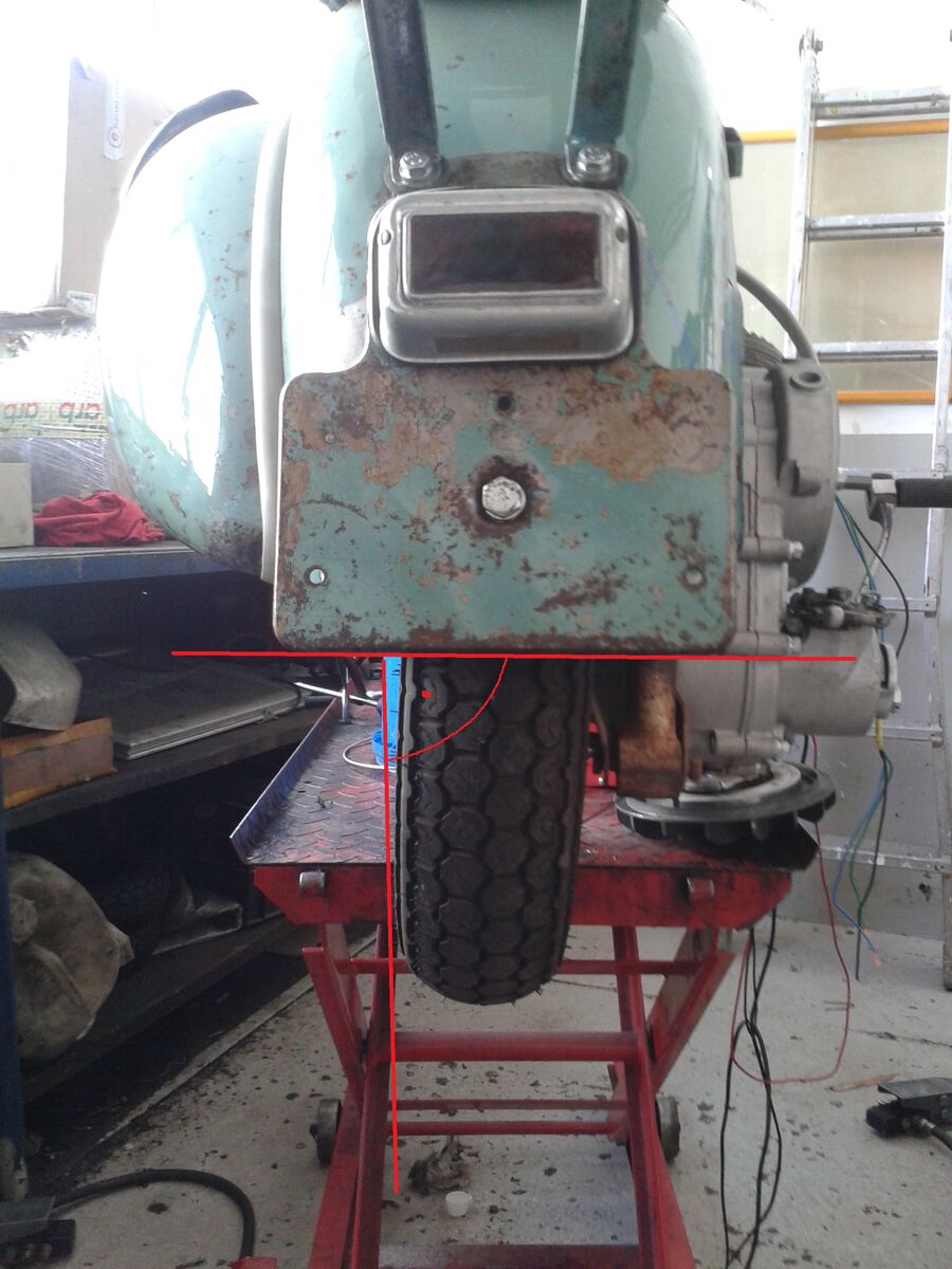 Auch mit freiem Auge zu sehen, die Verdrehung der hinteren Bremsankerplatte.