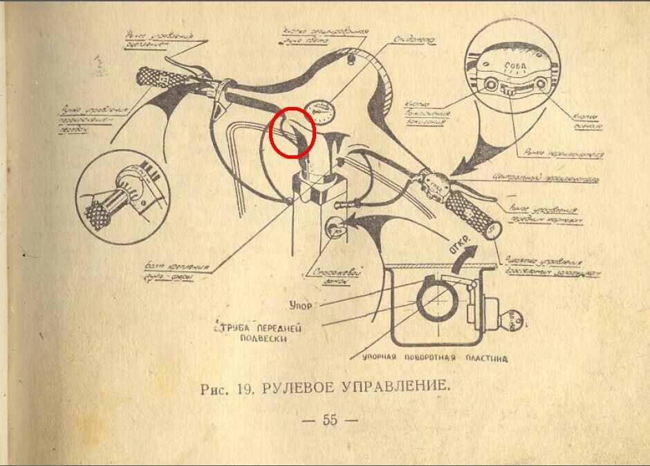 Was mir auch noch etwas spanisch/russisch vorkommt, sind die Kabel, die direkt neben dem oberen Lenkkopflager aus dem Rahmen kommen und von dort in den Lenker münden. Am Bild im roten Kreis - das haben doch die späteren Exemplare nicht mehr, oder täuscht es mich?
